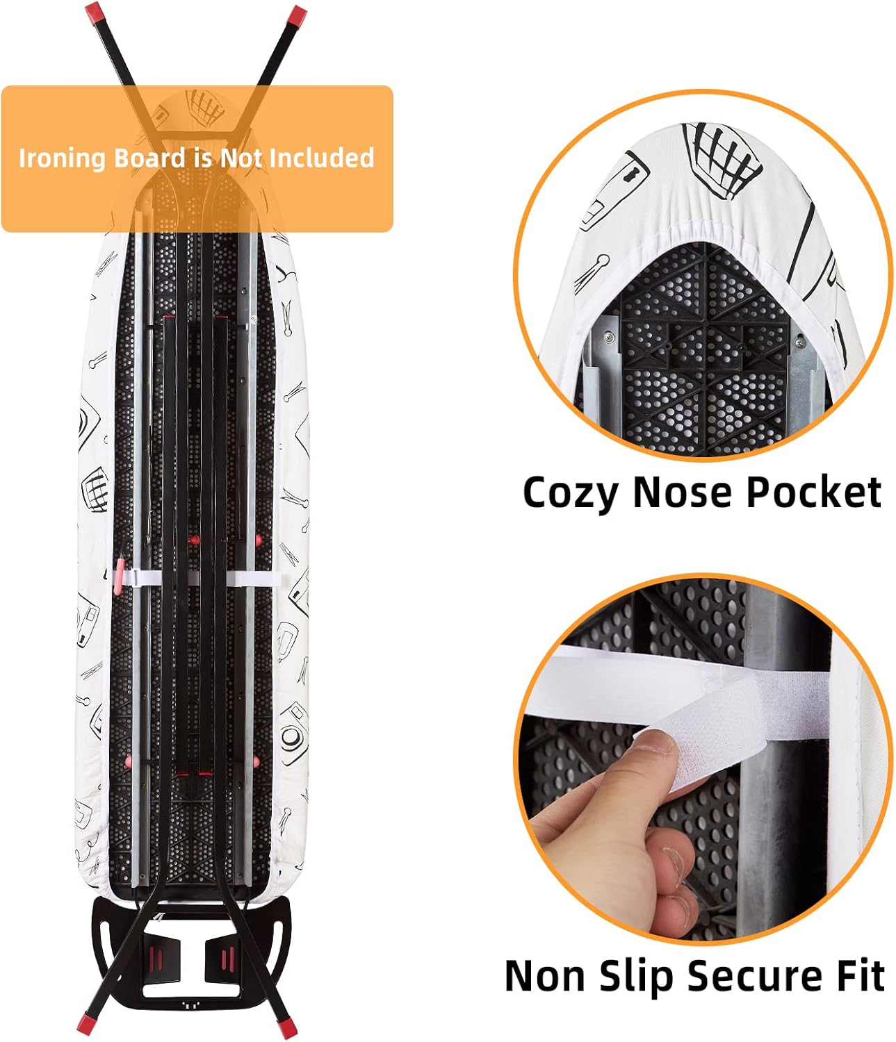 • SECURE ON YOUR IRONING BOARD TIGHTLY: The unique double non slip nose bag simplifies installation and secures it firmly in place. The elastic edge can tighten and straighten the ironing board cover to ensure that it is not easy to move or slide