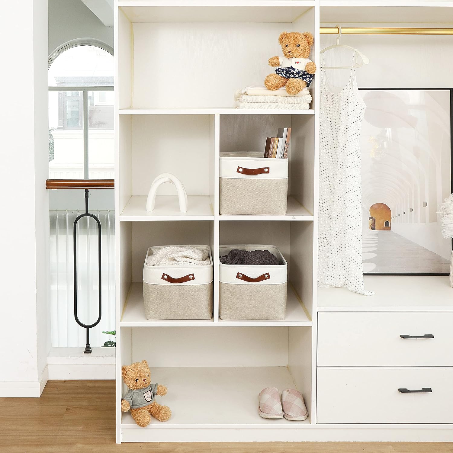 OrganiHaus Large Fabric Storage Baskets for Shelves 3 Pack, 15x11in Closet Storage Bins for Shelves, Cloth Baskets for Organizing, Linen Closet Organizers, Fabric Basket, Beige/White