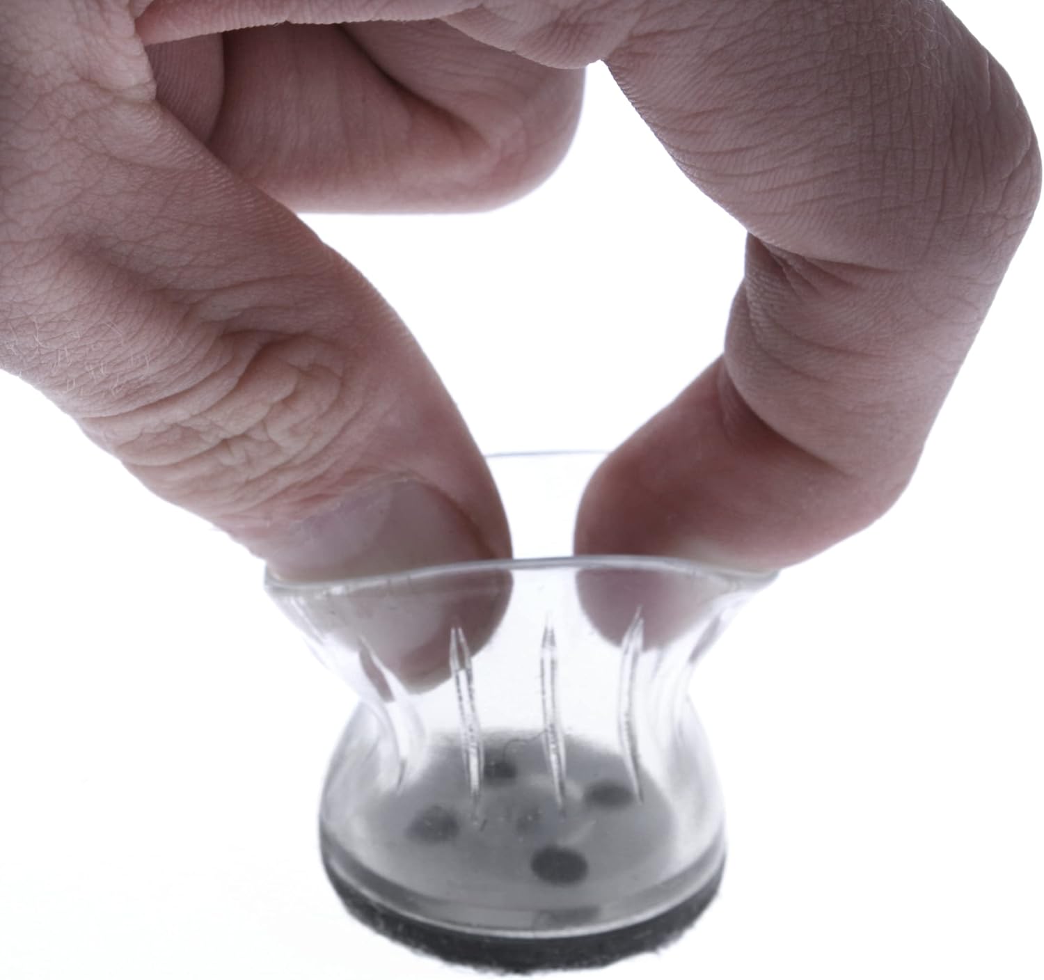• Fits round & square furniture legs – These stretch to fit chair pads securely fit round legs 15/16” to 1-1/8” in diameter (23 – 29mm) and square legs 7/8” to 1-1/16” in diameter (22 – 27mm). The tube that holds the furniture leg is made of an advanced polymer material that is strong, tear resistant, long lasting, and clear.
