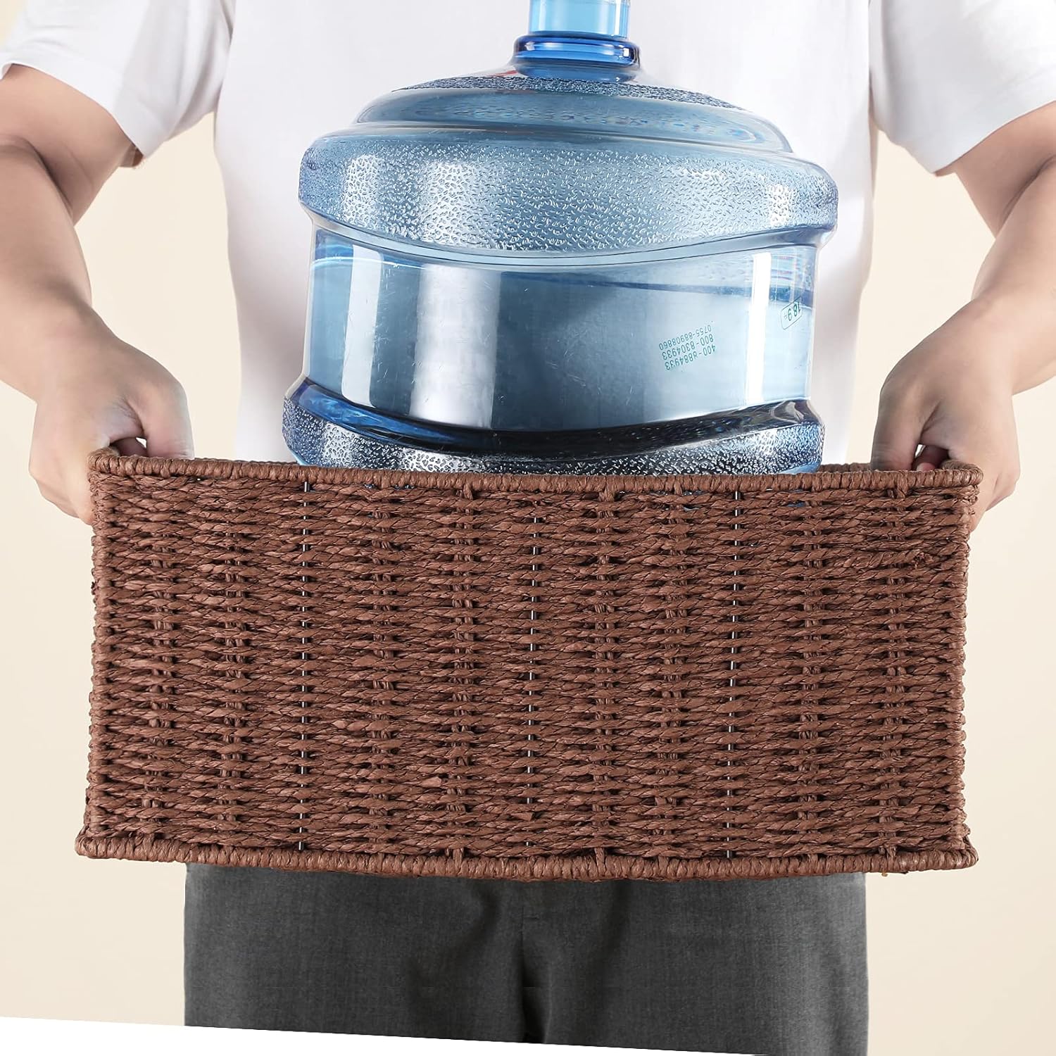 • Durable and Versatile: these pantry baskets are made of a metal wire frame and handwoven twisted paper rope, hand-woven by skilled workers, clean up and organize your home with these rattan-style plastic baskets.