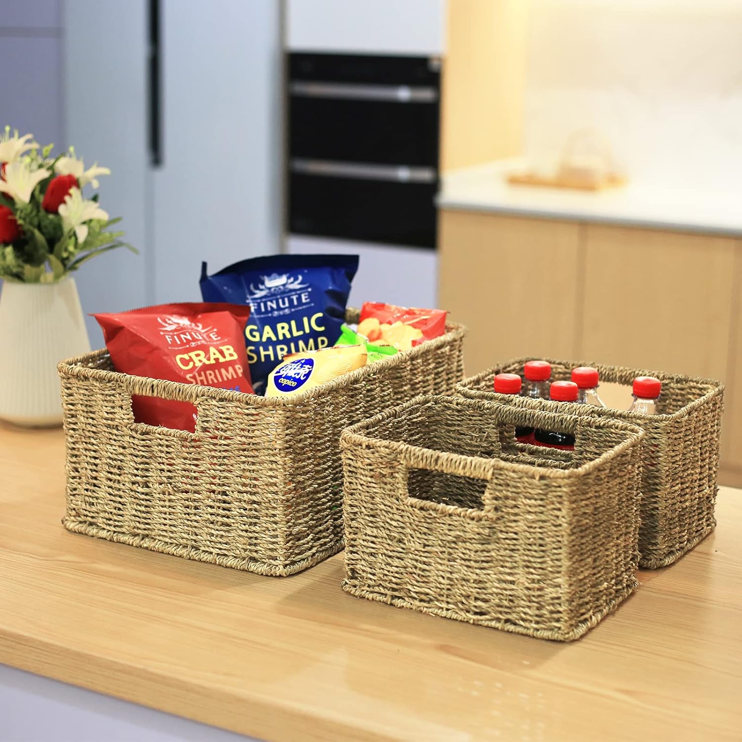 • Materials: these pantry baskets are made of natural seagrass material, the wicker baskets will add plain sight to your room.