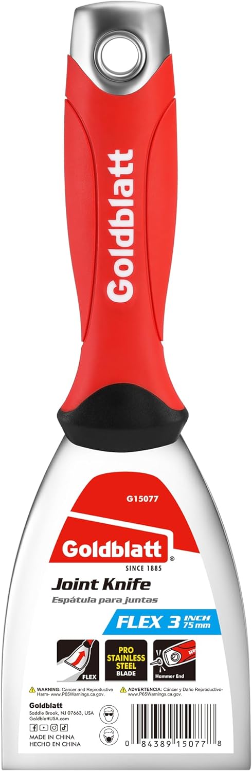 Goldblatt 3" Putty Knife, Stainless Steel Scraping Paint, Putty Knife Scraper with Hammer End, Soft Grip, Perfect for Drywall Repairing and Finishing