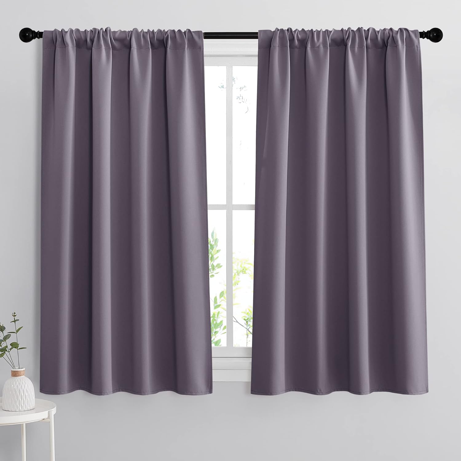 RYB HOME Bedroom Curtains Blackout - Light Block Energy Efficiency Small Window Treatment Drapes for Kitchen Dining Baby Nursery Morden Decor, W 42 x L 54 inch, Greyish Purple, 2 Panels