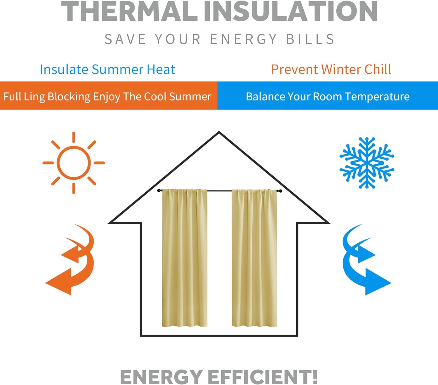 • LIGHT BLOCKING - Curtains block 85-95% sunlight and UV rays (Dark color works better) for maximum privacy and undisturbed sleep. Thermal property of the blackout curtains ensure that the room temperature is regulated. Protect your indoor furniture from directly exposing to the sun.