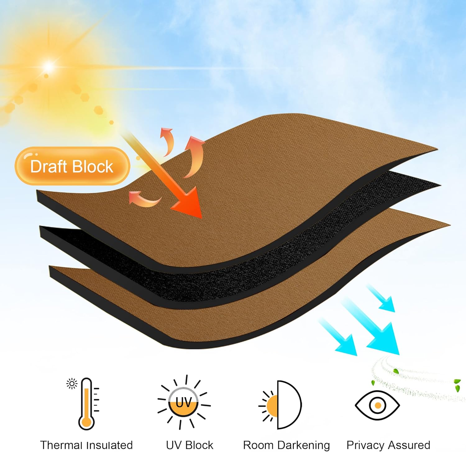 • LIGHT BLOCKING - Curtains block 85-95% sunlight and UV rays (Dark color works better) for maximum privacy and undisturbed sleep. Thermal property of the blackout curtains ensure that the room temperature is regulated. Protect your indoor furniture from directly exposing to the sun.