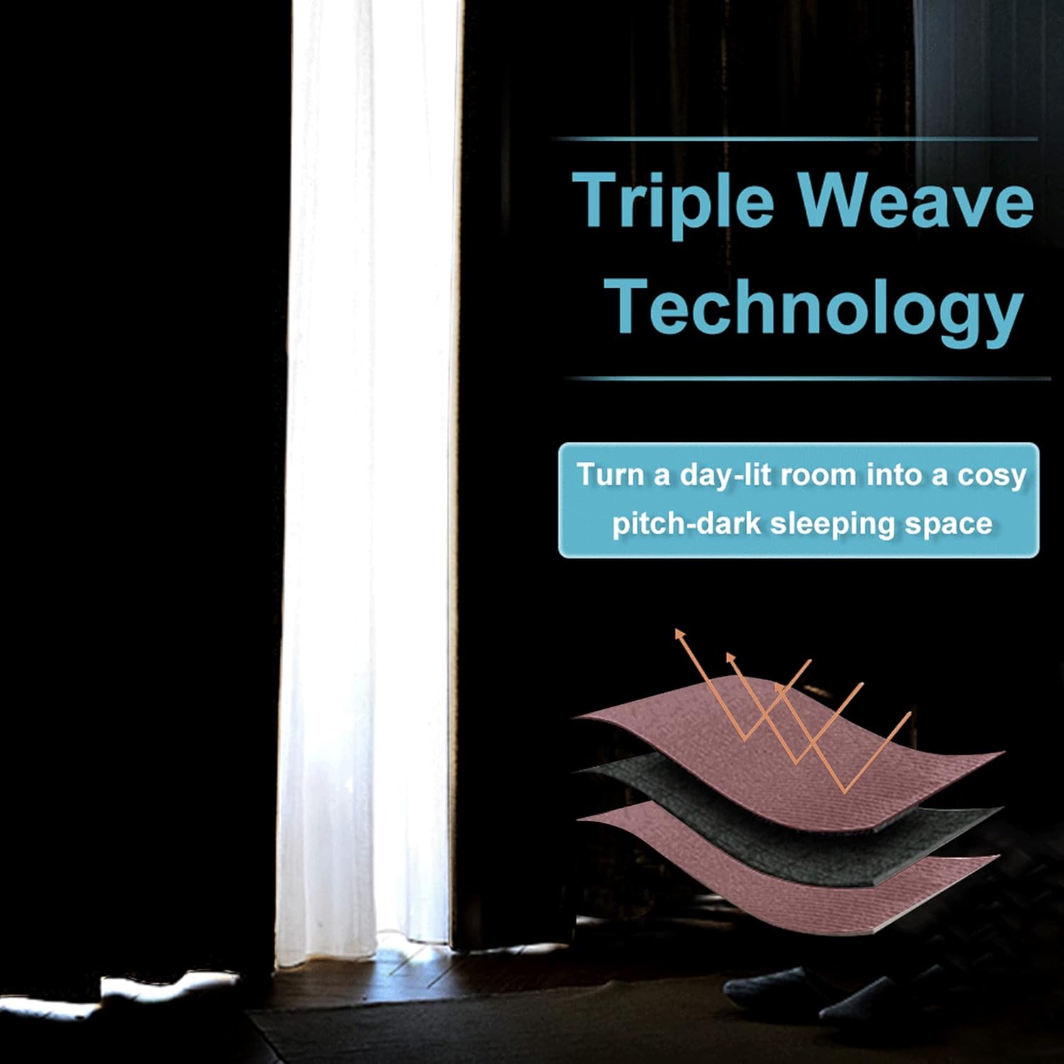 • LIGHT BLOCKING - Curtains block 85-95% sunlight and UV rays (Dark color works better) for maximum privacy and undisturbed sleep, which benefit from the innovative triple weave technology.