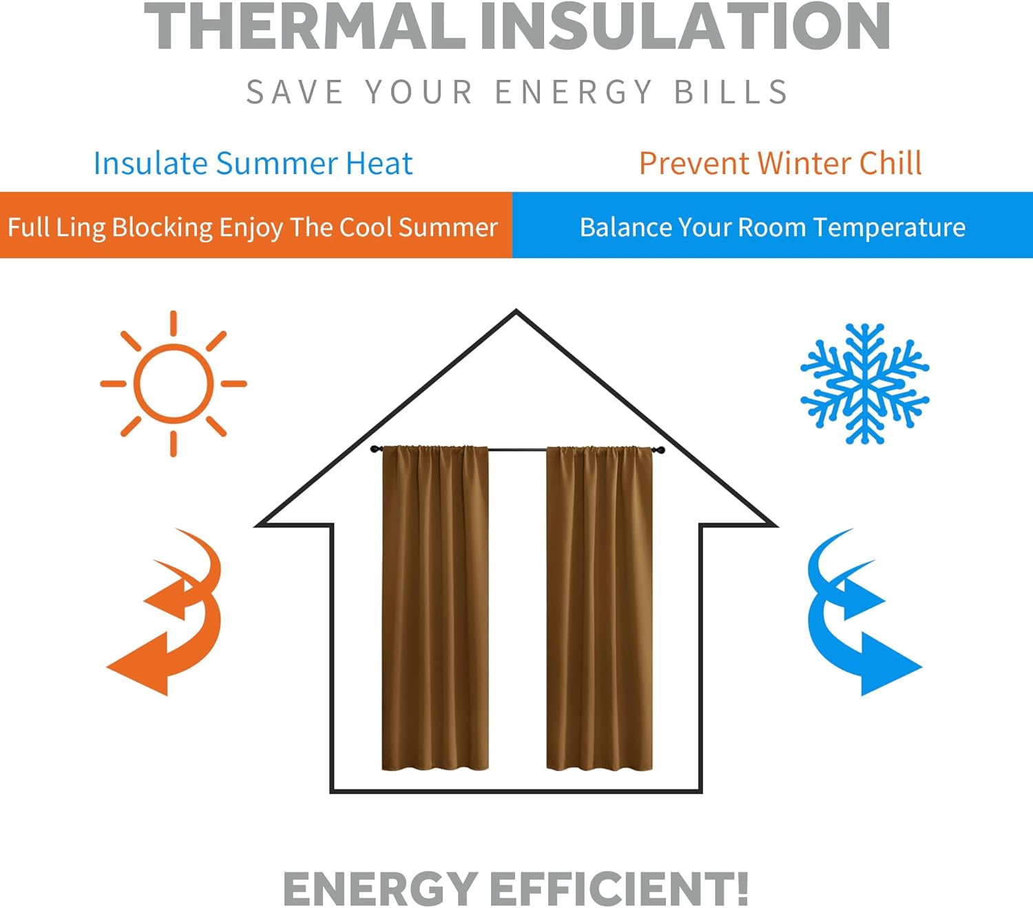 • LIGHT BLOCKING - Curtains block 85-95% sunlight and UV rays (Dark color works better) for maximum privacy and undisturbed sleep. Thermal property of the blackout curtains ensure that the room temperature is regulated. Protect your indoor furniture from directly exposing to the sun.