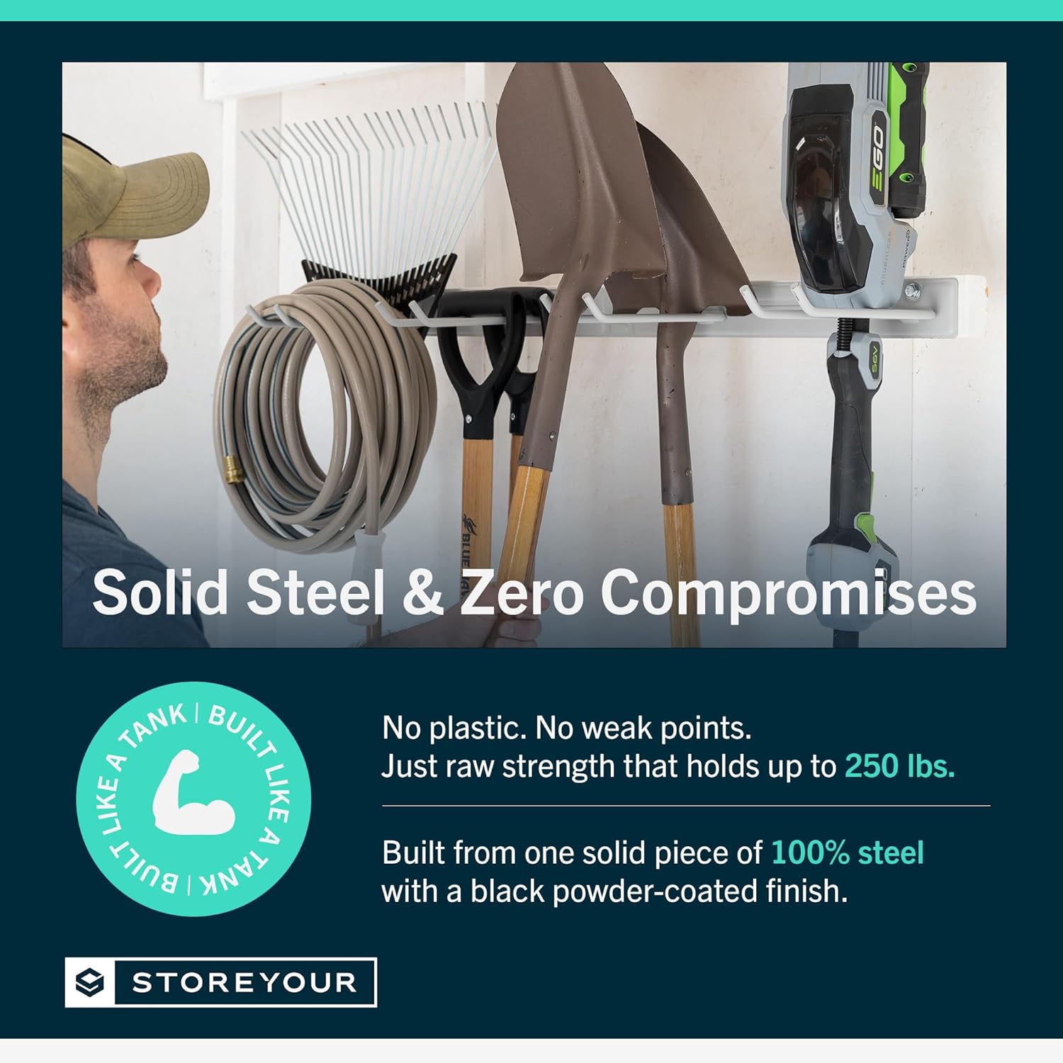• ULTRA-STRONG & BUILT TO LAST – Made from 100% solid steel with no plastic parts or assembly required, this tool rack is crafted to withstand heavy-duty use. Each wall-mounted storage rack arrives fully welded and powder-coated to resist rust and corrosion. Perfect for organizing tools, outdoor storage gear, or even a fishing pole rack for the garage.