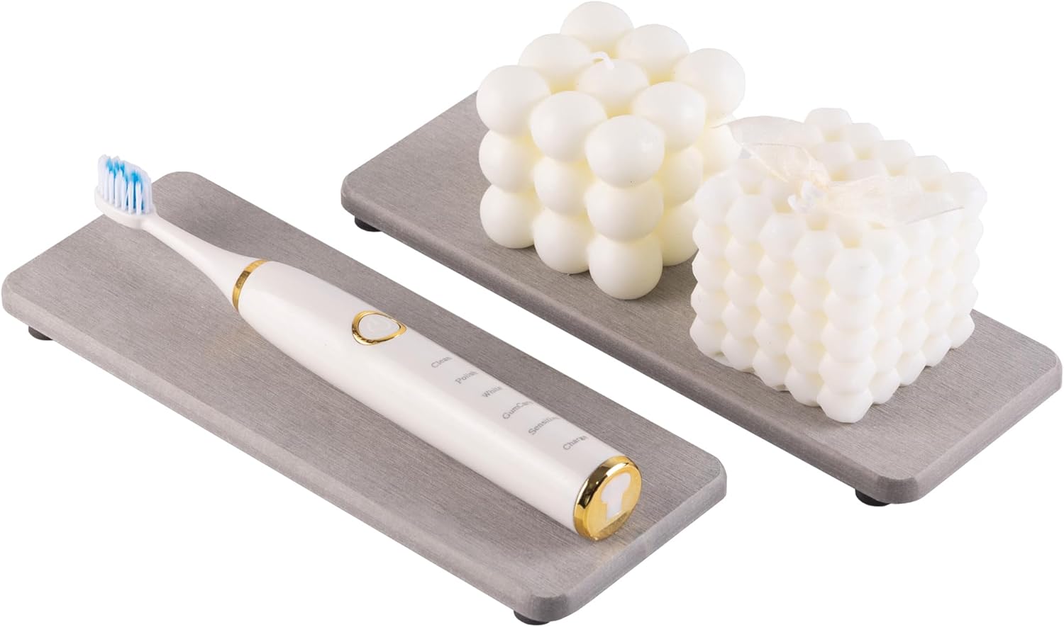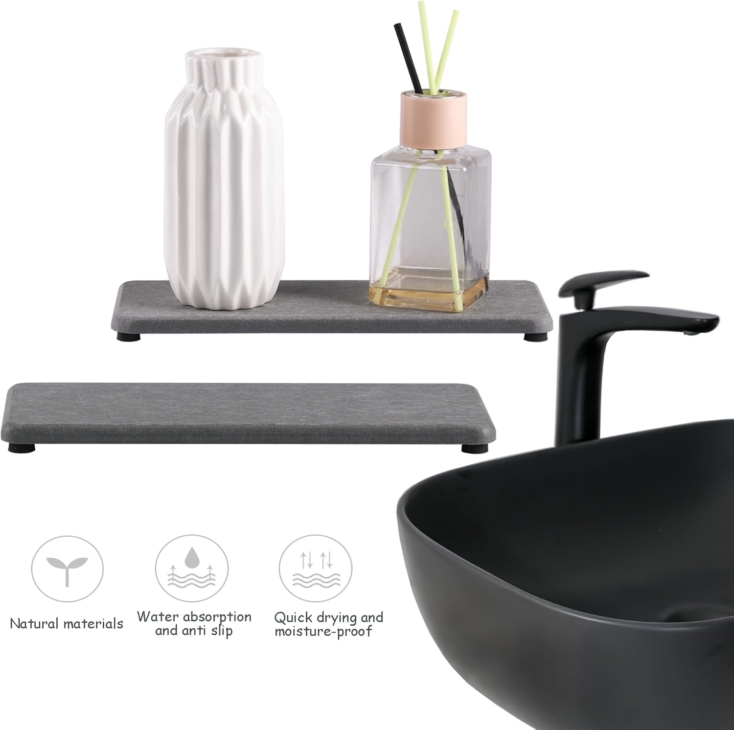 2 Pcs Water Absorbing Stone Trays, Kitchen/Bathroom Sink Soap Dish, Diatomite Tray Used for Hand Soap & Cosmetic Bottles in The Modern Home, 3.15" W x 8.7" L, Gray