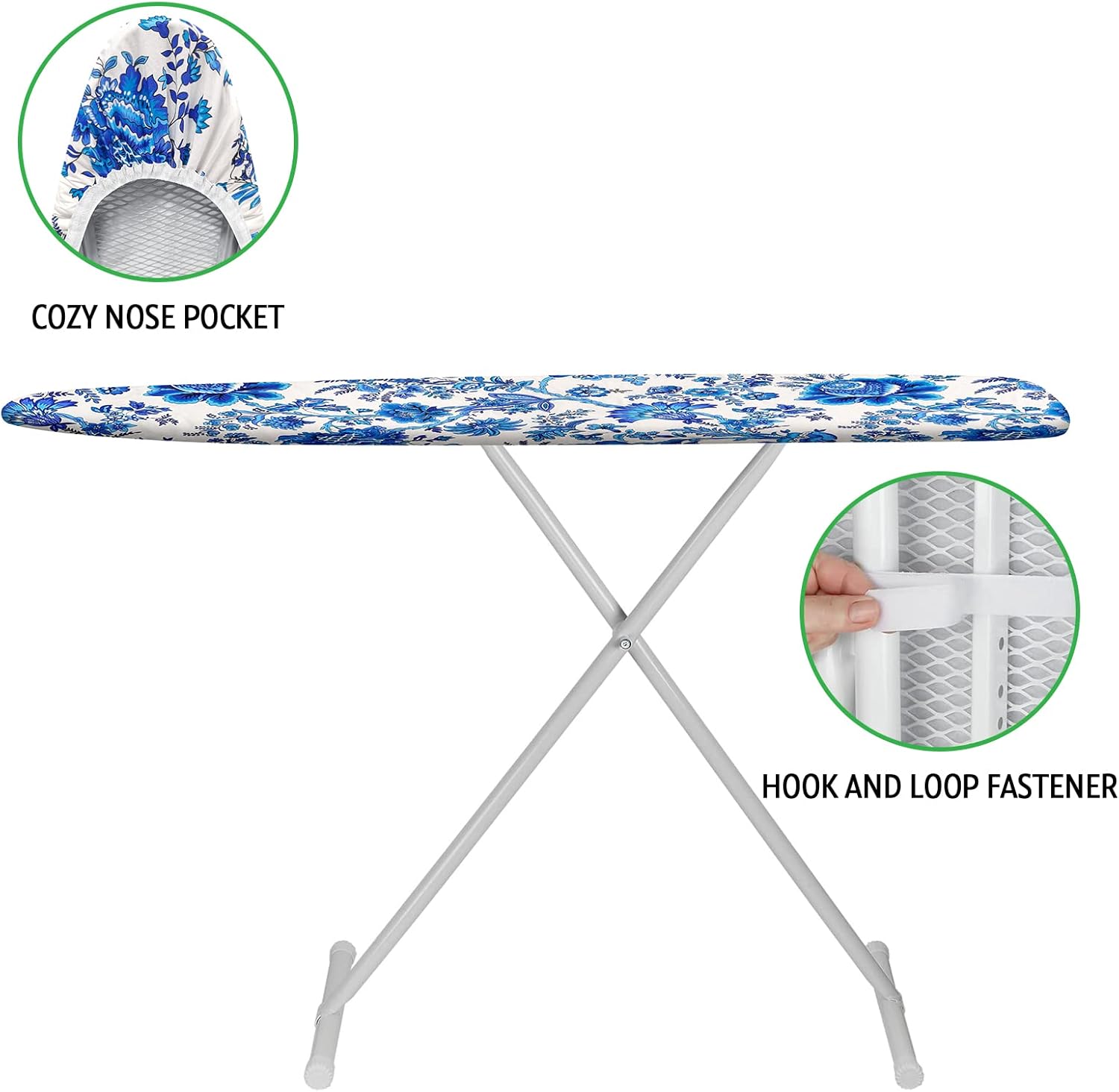 • SECURE FIT: the nose pocket design with elasticized edges and hook and loop fasteners straps ensure securely non-slip fits and keep the ironing board cover in place on standard sized ironing board. No need to worry about your ironing board covers slipping.Make your ironing chores more smooth and enjoyable
