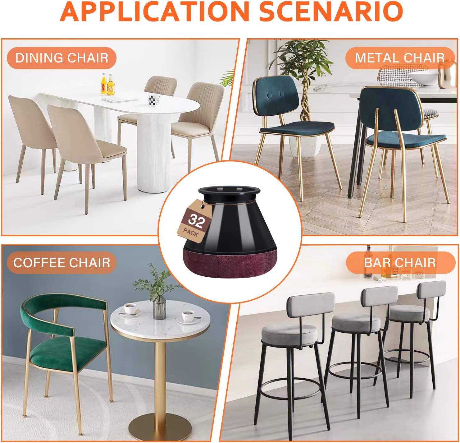 • [Reinforced bottom felt pad]-These chair leg protectors are designed for angled chair legs. The upgraded cup-shaped felt pad grips the chair legs securely. Even when the chair is tilted, it stays stable while protecting your floors from scratches and noise.