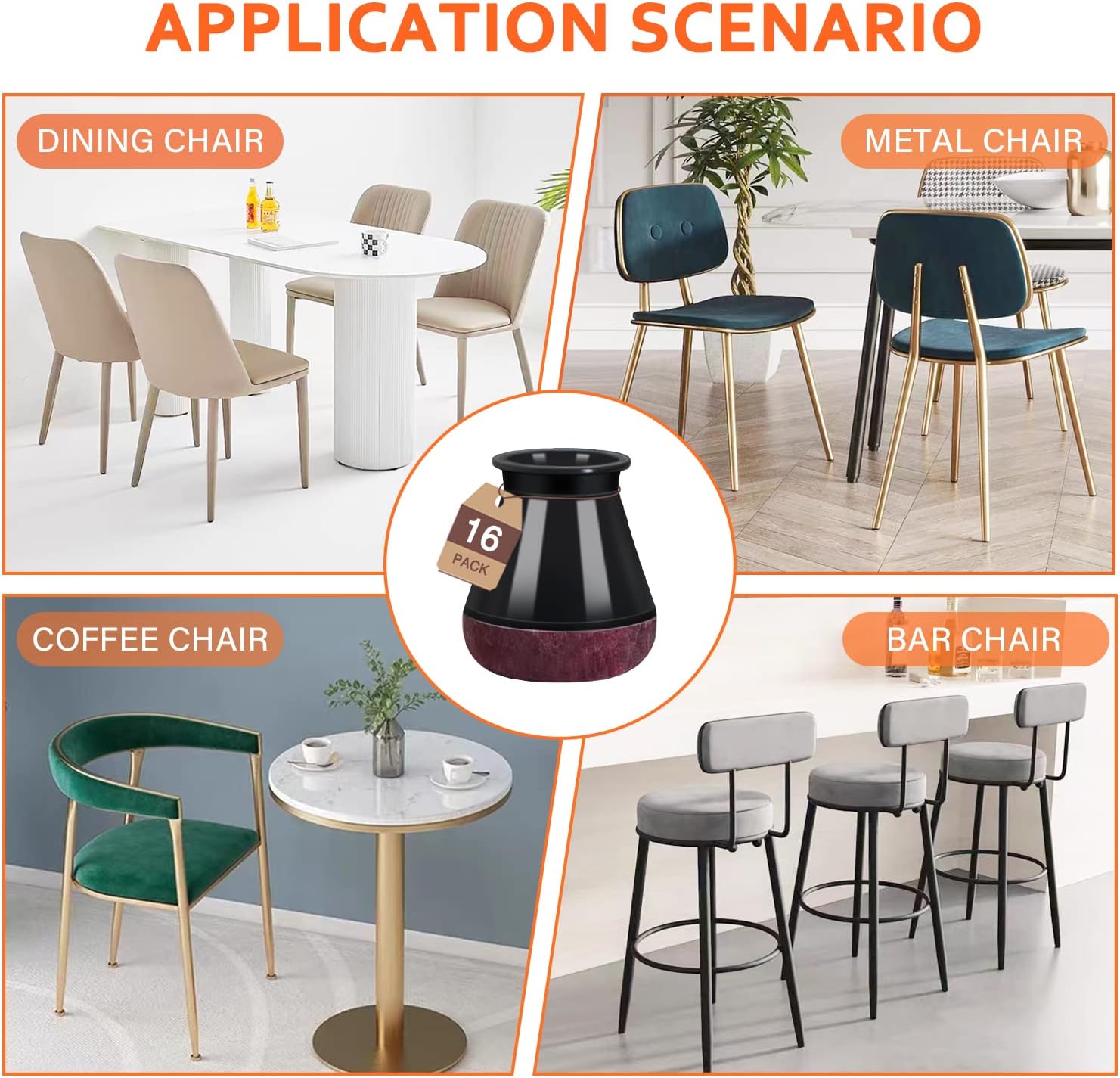 • [Reinforced bottom felt pad]-These chair leg protectors are designed for angled chair legs. The upgraded cup-shaped felt pad grips the chair legs securely. Even when the chair is tilted, it stays stable while protecting your floors from scratches and noise.
