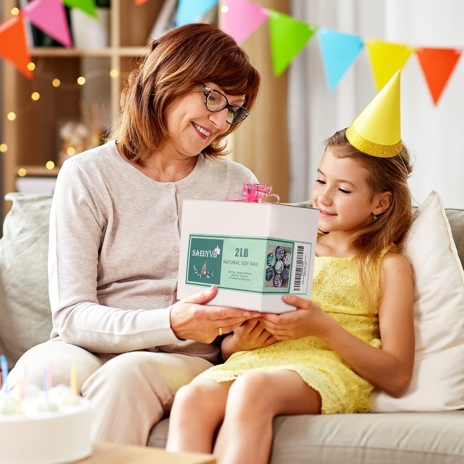 • 【CANDLE MAKING KIT】soy wax DIY kit includes all the essential materials to get you started crafting beautiful candles. 1x 2lb bag of natural soy wax (flake form) and 20x pre-cut candle wicks, 20 wick stickers and 2x centering devices.