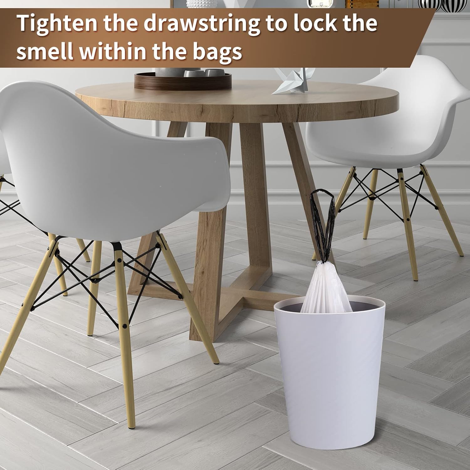 Trash Bags Drawstring Garbage Bags 8 Gallon Thickened Stretchy,Bathroom,Bedroom,Kitchen,Office and Living Room(100 Count)