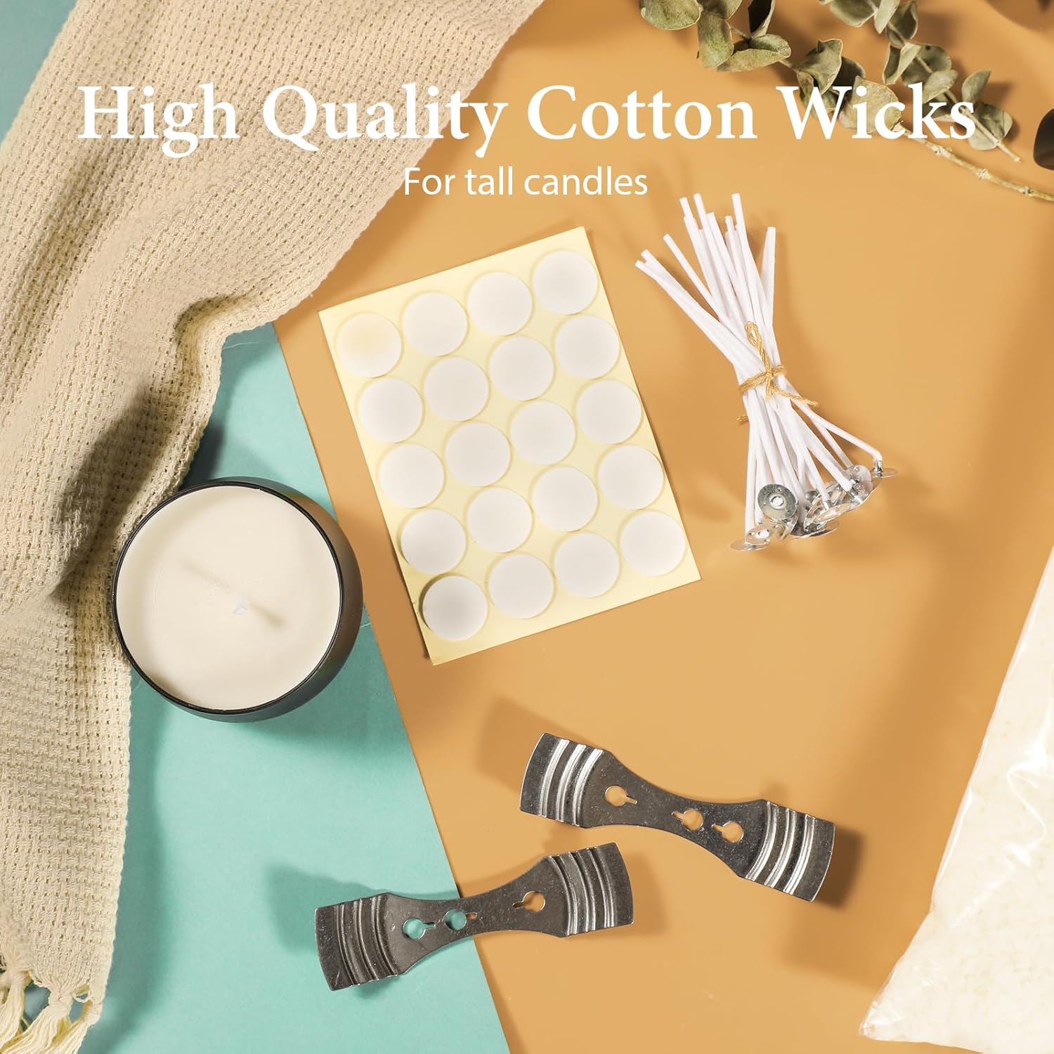 • 【CANDLE MAKING KIT】soy wax DIY kit includes all the essential materials to get you started crafting beautiful candles. 1x 5lb bag of natural soy wax (flake form) and 20x pre-cut candle wicks, 20 wick stickers and 2x centering devices.