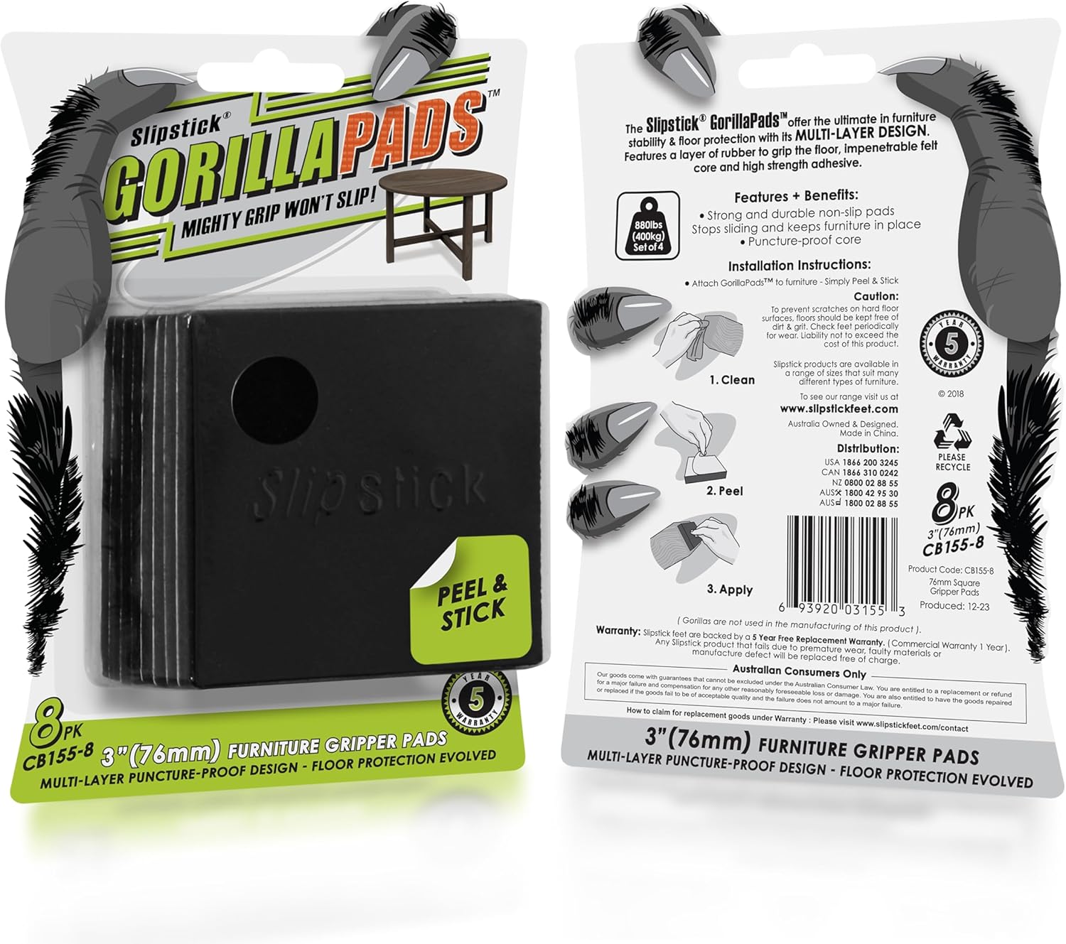 • Mighty grip that wont slip – Gorillapad furniture grippers by Slipstick are the universal solution to stop unwanted movement or sliding of furniture / objects and effectively protect hard surfaces from scratches or damage. Premium adhesive non slip furniture pads.