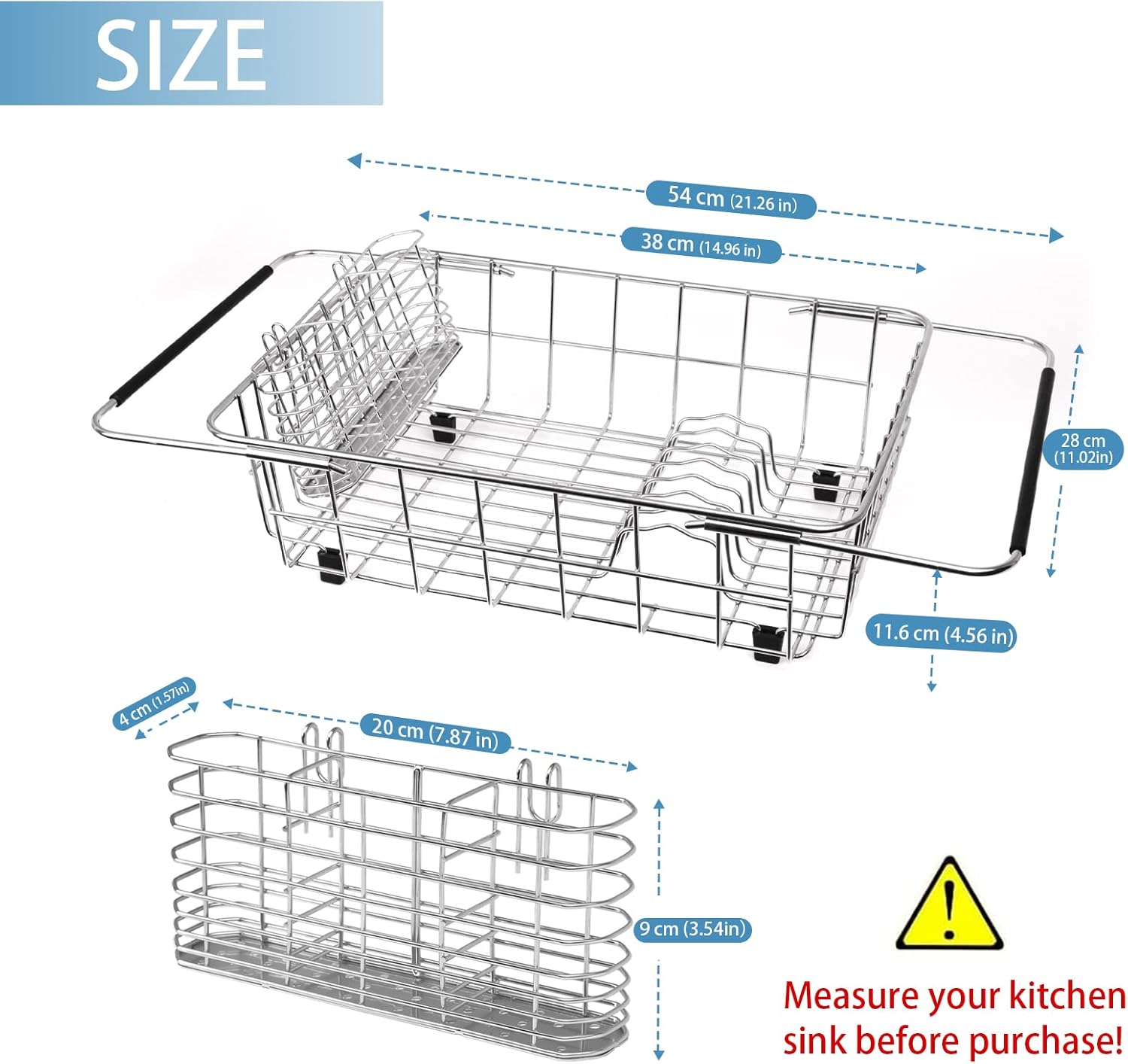 • Size:This above sink dish baking rack has a folded size of 14.96" (38 cm) X 11.02" (28cm) X 4.56" (11.6cm) and an unfolded length of 14.96" to 21.26".