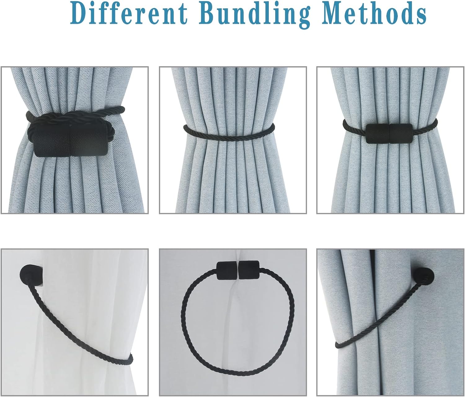 Magnetic Curtain Tiebacks 4 Pack Black Curtain Rope Tieback Curtain Holders for Drapes Modern Tie Backs Decorative Curtain Holdbacks