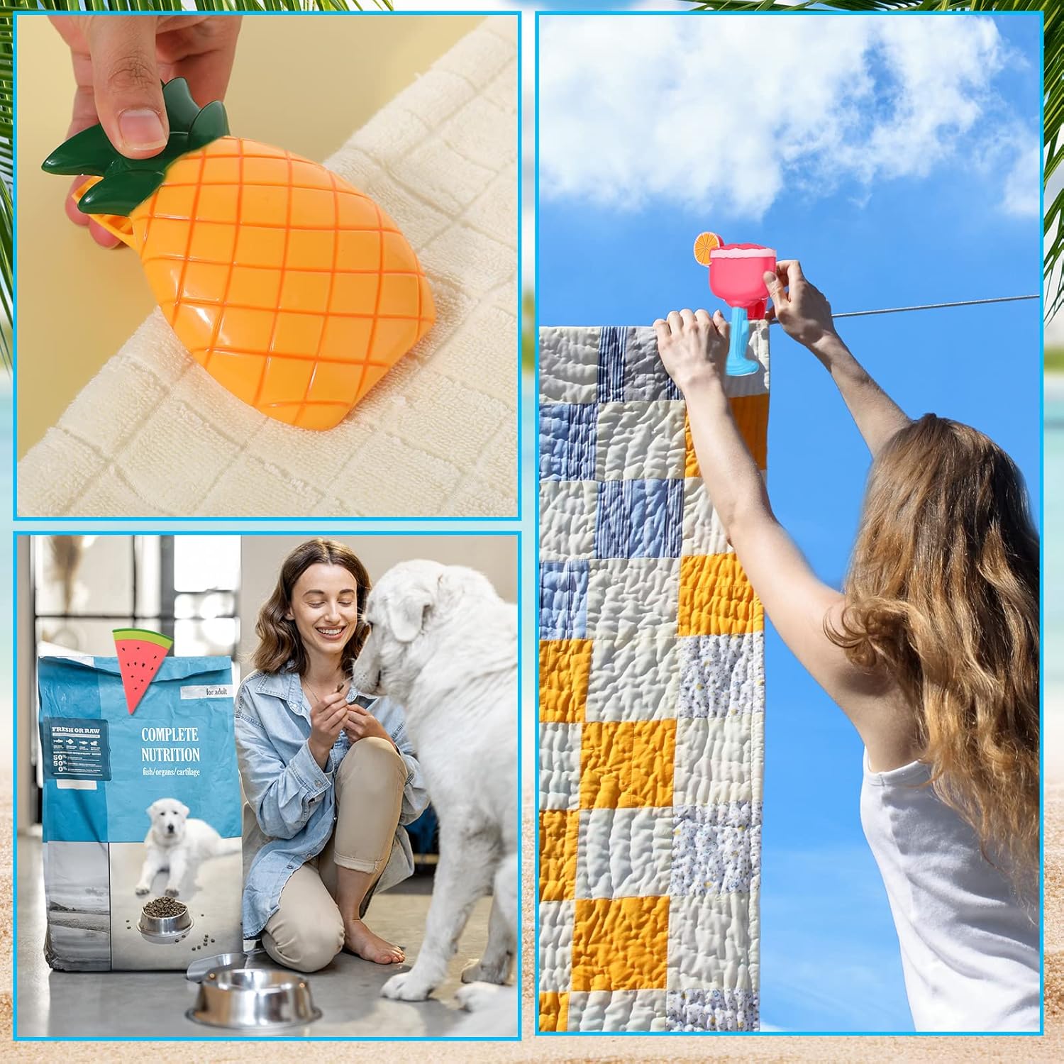 • Cute and Funny: the decorative beach towel clips adopt champagne glass, pineapple, margarita cup, watermelon, styles, look cute and funny, you can use them to clip clothing, towels, and bedding