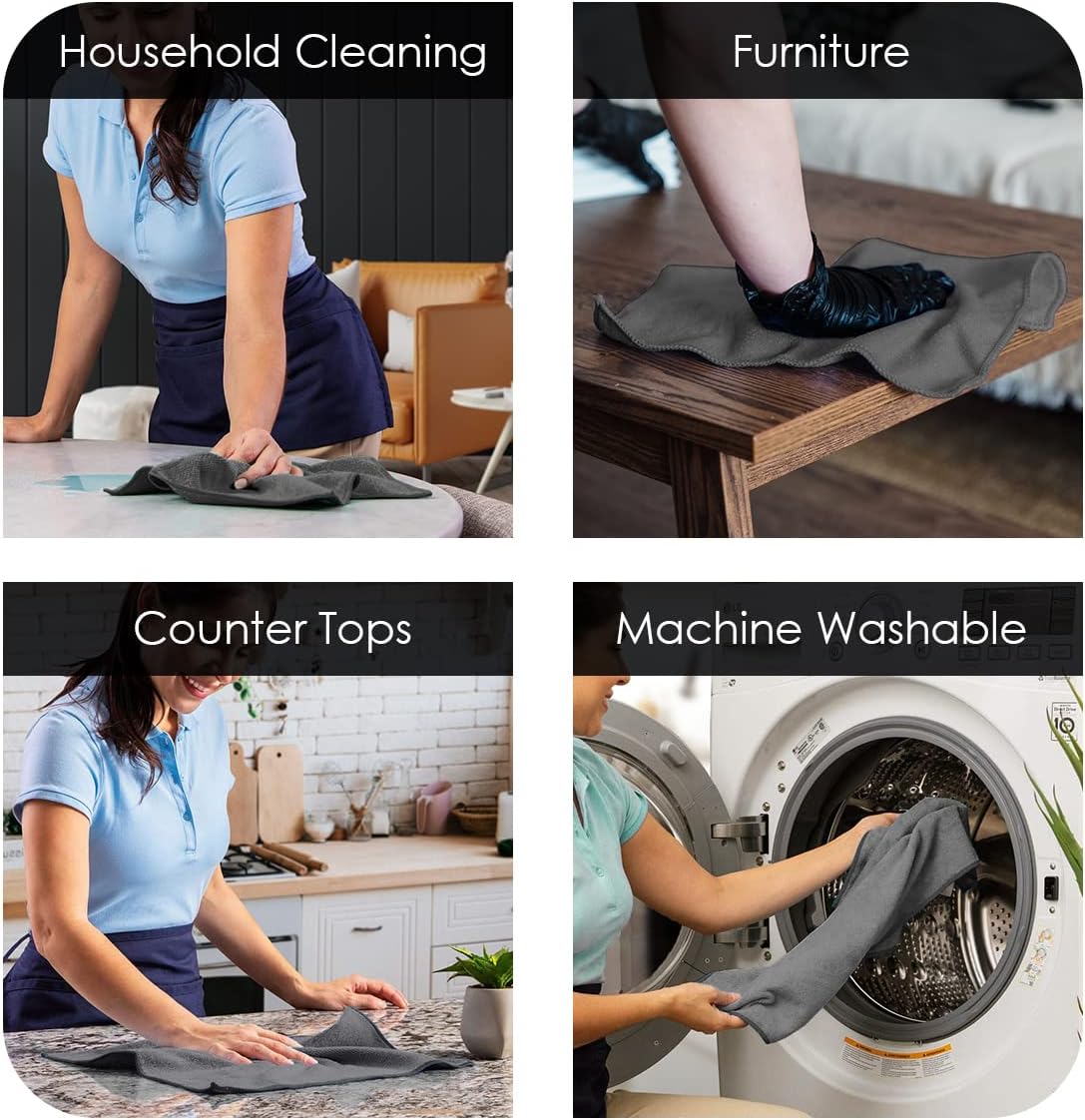 Avalon Towels Microfiber Cleaning Cloths (Value Pack of 36) Size 16" x 16", Highly Absorbent Cleaning Rags, Lint Free Cleaning Towels, Reusable and Washable, Microfiber Towels for Cars (Grey)