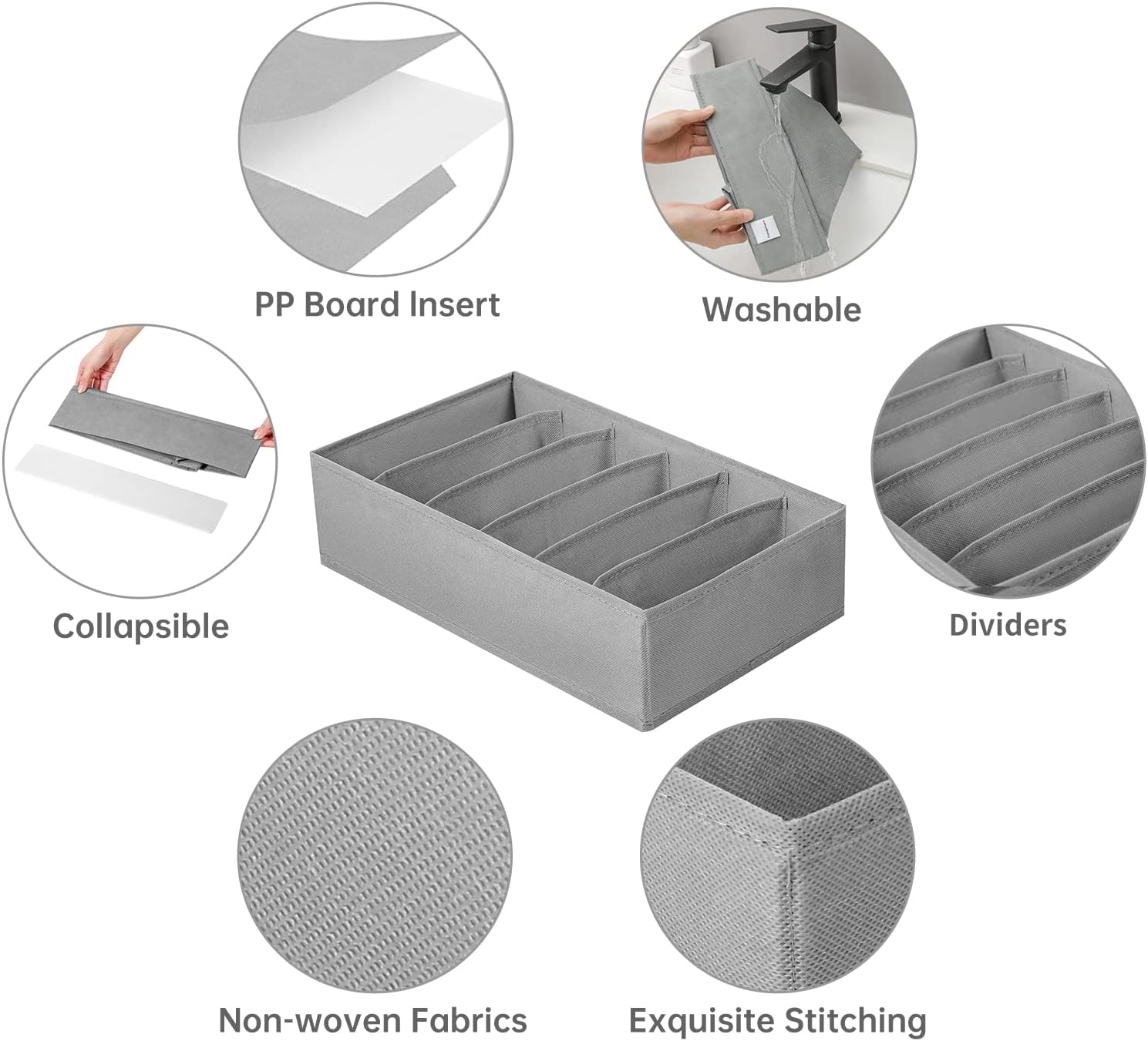 • 【6 Grids Divider】Each wardrobe organizer is divided into 6 separate grids, one grid, and one item, which can keep your clothes and closet neat and organized, and easy to pick and place in a short time. Plus, the foldable and stackable design can greatly improve the utilization of wardrobe space.