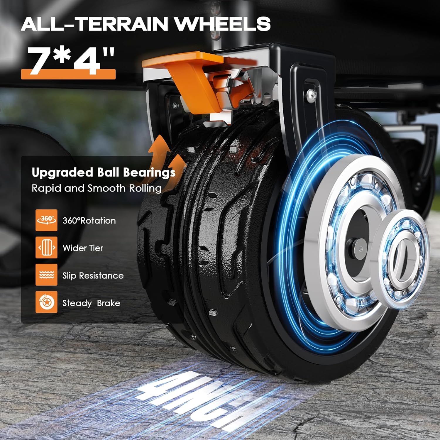 • 【Long-Lasting Efficient Transport】: Wide wheels do better on complex terrains. The sturdy wheels are made of PP+PVC, which has perfect maneuverability and higher transportation efficiency than others. It can roll over obstructions such as rocks, roots, and even curbs. The wheels have double bearings to maximize the carrying capacity and safety, which reflect its performance. Keep in mind, though, wagons don't work on soft sand.