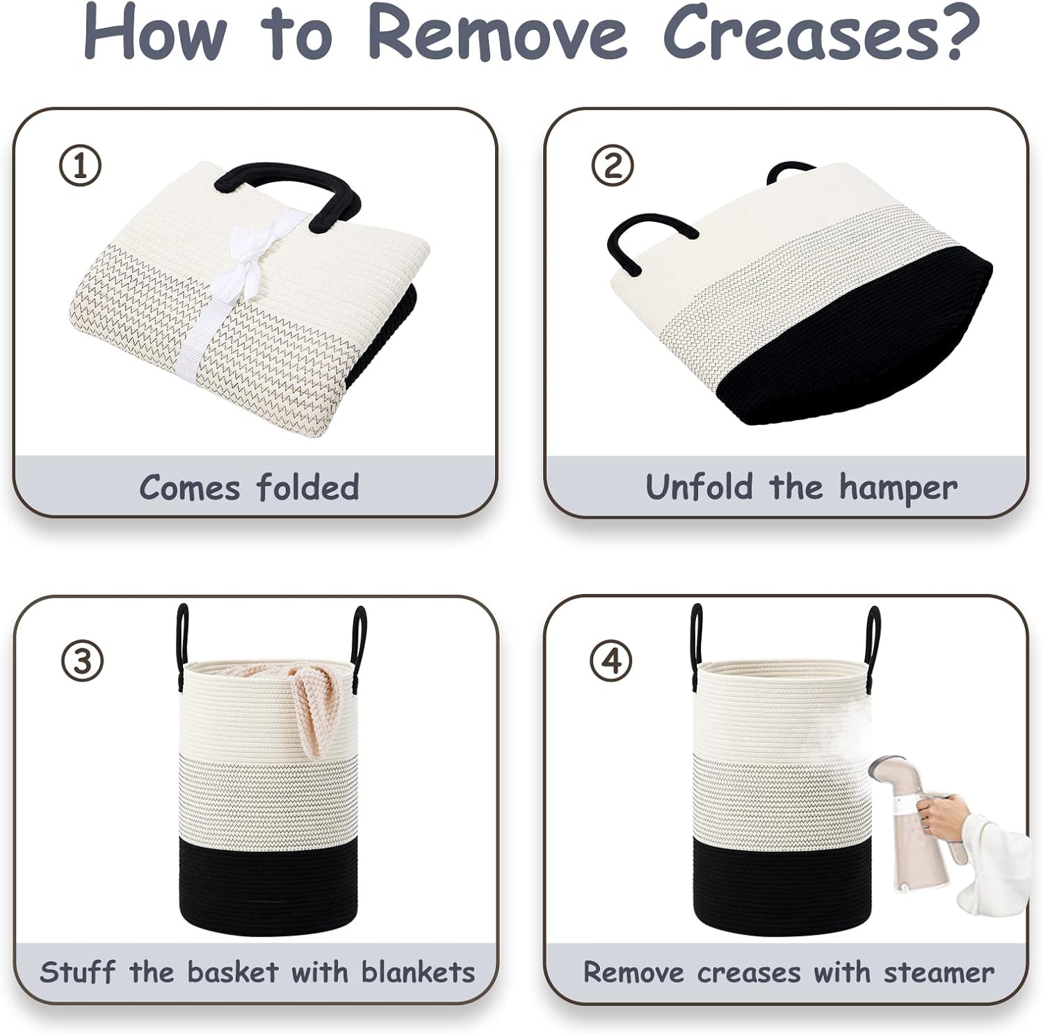 • ❤【Restore Elegant Shape】 To improve shipping efficiency, foldable woven rope hampers are packed compactly. You can put some blankets or small quilts in it and give it some time to regain its shape. Iron is a great idea to remove the creases.