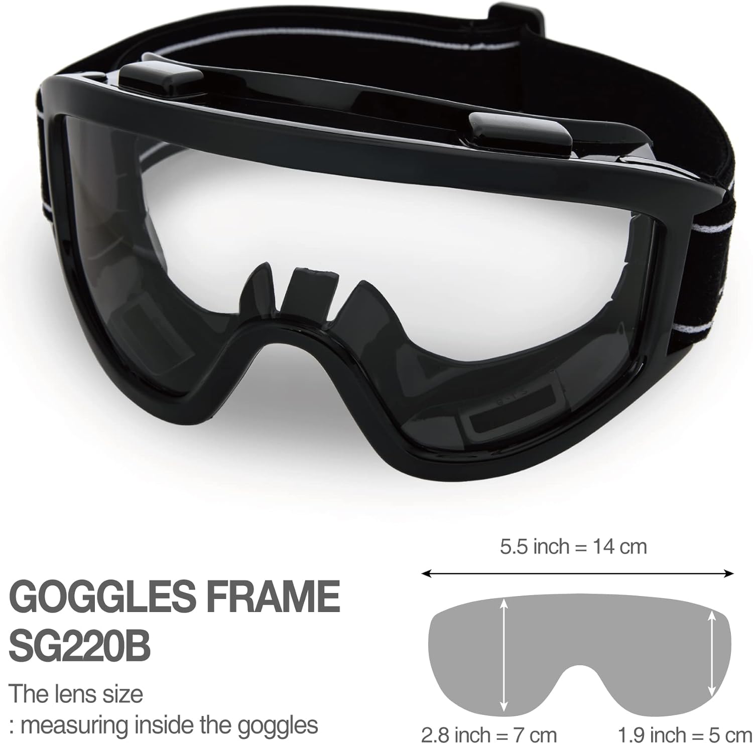• ANTIFOG, SCRATCH PROOF and UV BLOCKING. SG220B wide-vision goggles were treated with a hard coat to prevent fogging and scratches. They are designed to fit over your prescription eyewear and specs.