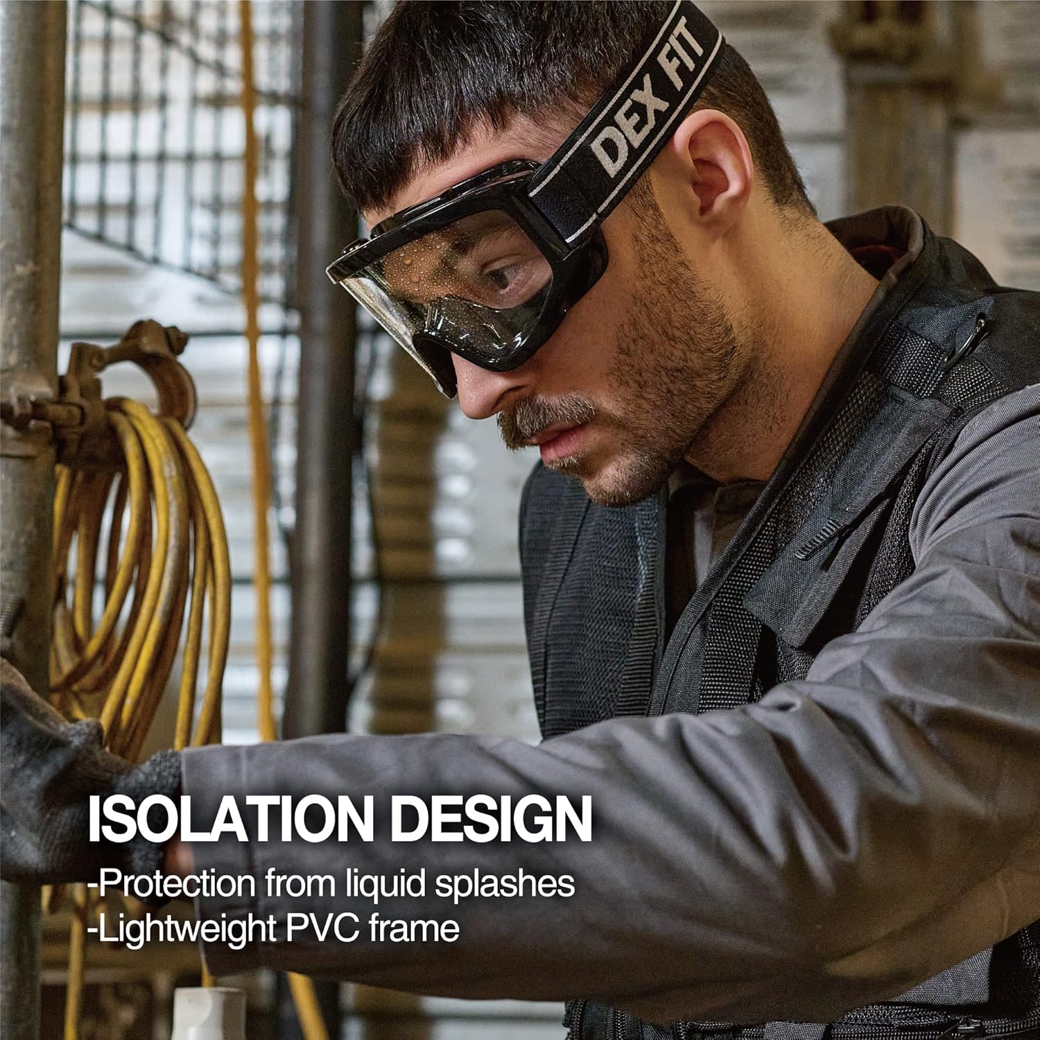 DEX FIT Protective Safety Goggles SG220B; Anti Fog & Scratch, Z87 Eye Protection for Lab, Science, and Chemistry Work, Indirectly Vented, Adjustable for Women and Men, (Black Frame, Clear Lens)