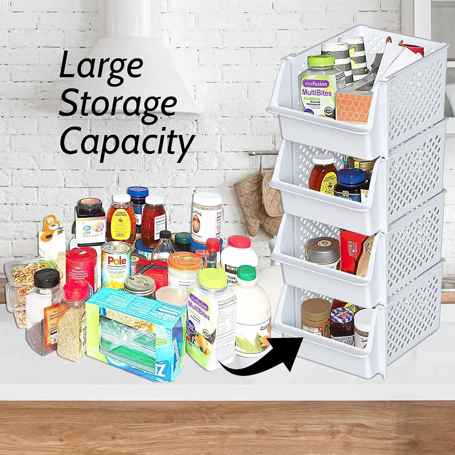 • KEEPS ESSENTIALS ORGANIZED AND VISIBLE - Stackable bins hold foods, toys, utensils, and toiletries without bending off. Set of 12, Each bin size: 14.5” x 11.5” x 7”.