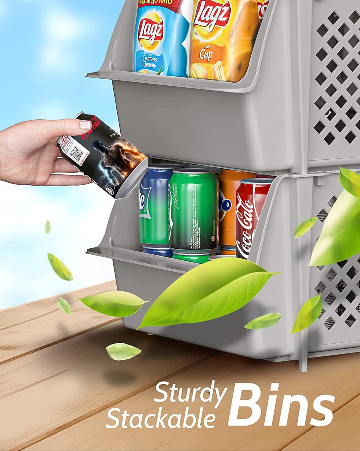 • KEEPS ESSENTIALS ORGANIZED AND VISIBLE - Stackable bins hold foods, toys, utensils, and toiletries without bending off. Set of 12, Each bin size: 14.5” x 11.5” x 7”