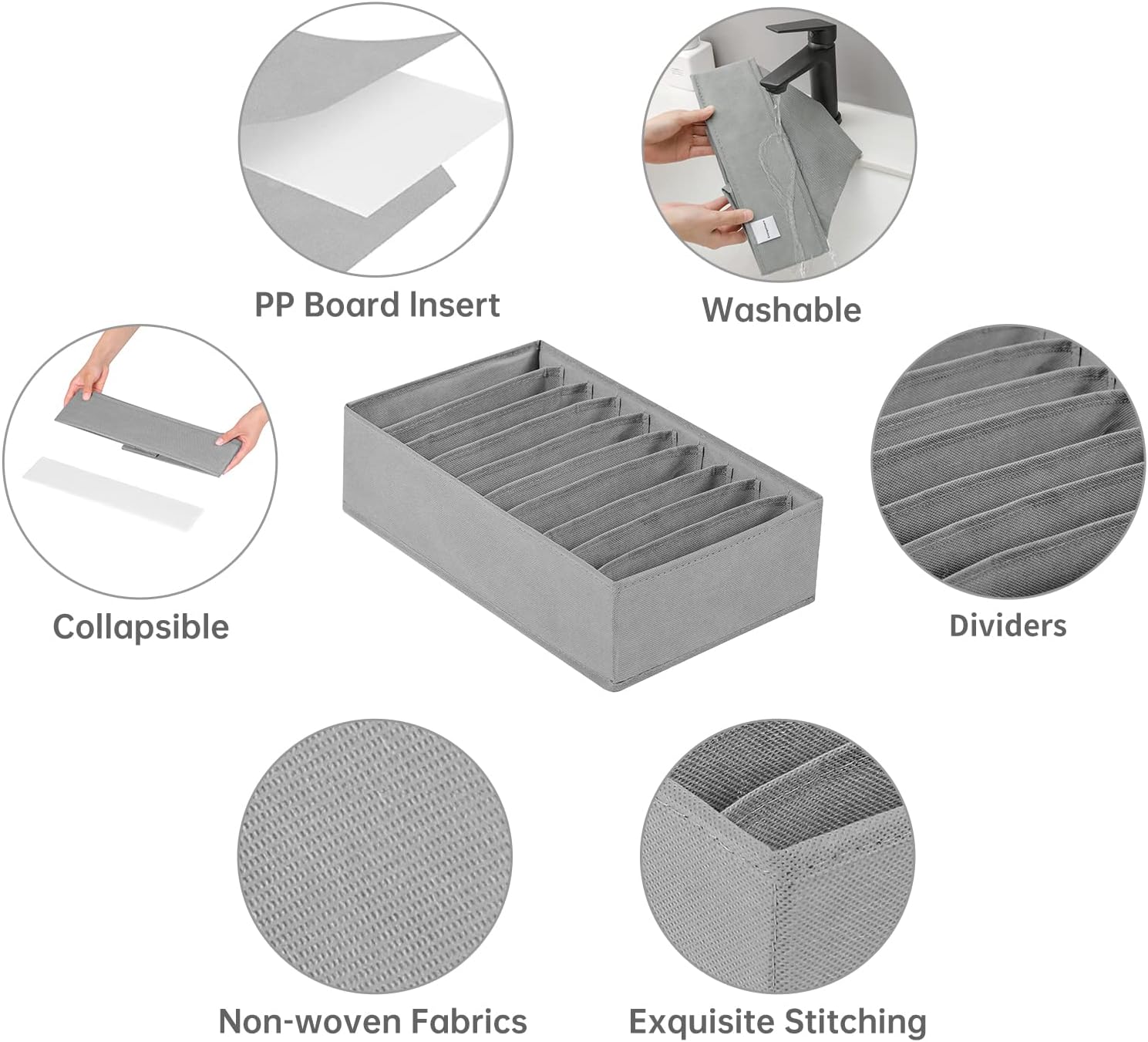 • 👕【10 Grids Divider】Each wardrobe organizer is divided into 10 separate grids, one grid, and one item, which can keep your clothes and closet neat and tidy and easy to pick and place in a short time. Plus, the foldable and stackable design can greatly improve the utilization of wardrobe space.