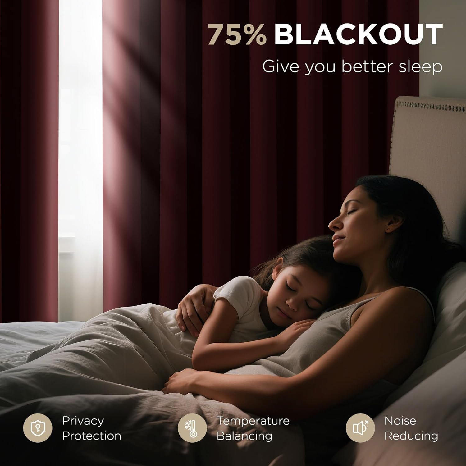 • 【Blackout Performance】Your go-to choice for adjusting indoor light! These curtains block over 75% of sunlight and outdoor glare, creating a cozier atmosphere in bedrooms, living rooms, and more. They also provide excellent privacy protection for your home. Pro Tip: Darker-colored curtains offer even better blackout effects.​