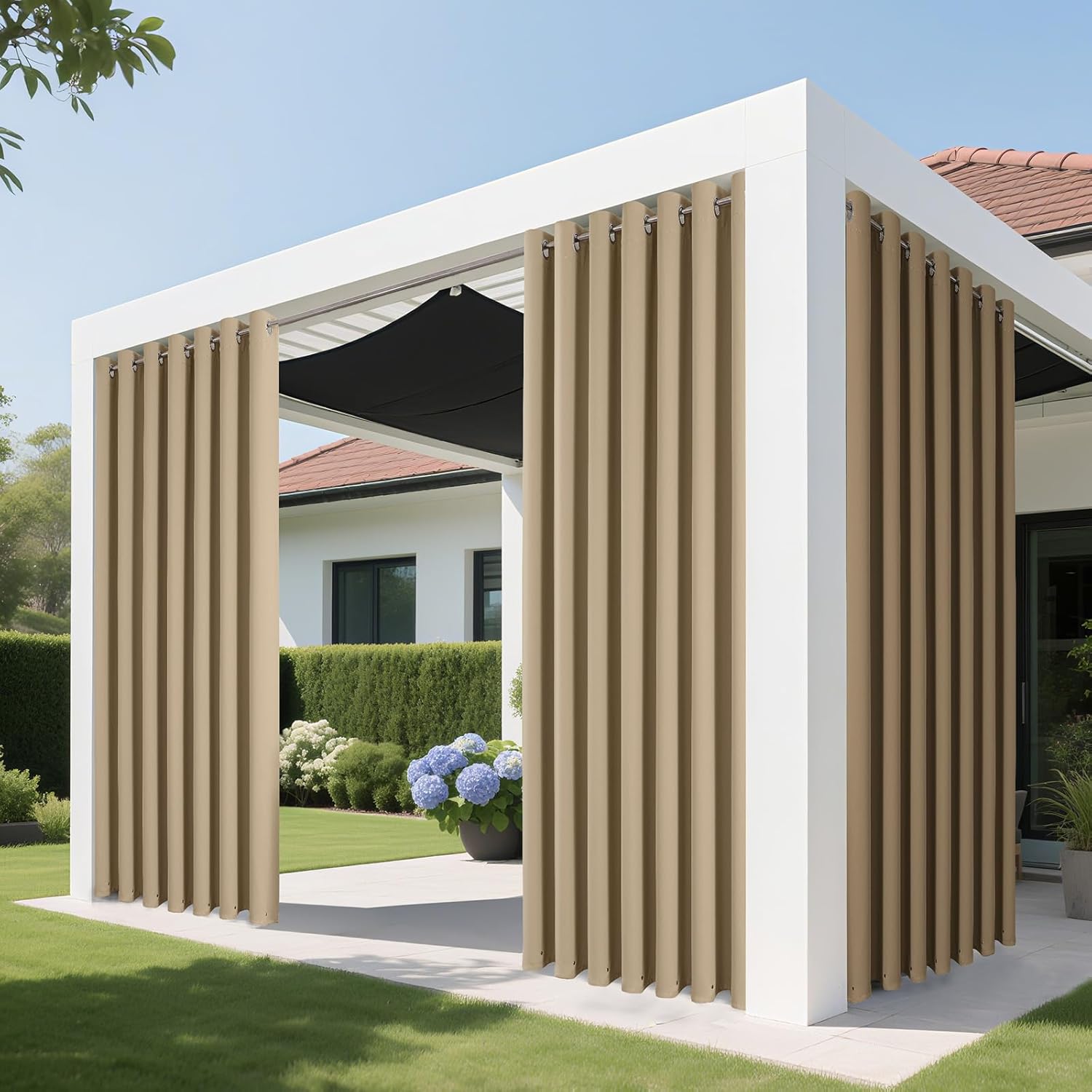 • 【Exquisite Details】Joydeco Blackout Sliding Door Curtains are crafted from high-density polyester fabric—durable, wrinkle-resistant, smooth, and soft to the touch. With a sleek, modern design, they exude elegance. The top features multiple silver rust-proof grommets: not only stylish but also making installation a breeze. Neatly stitched edges add a premium, sophisticated look to elevate any room.