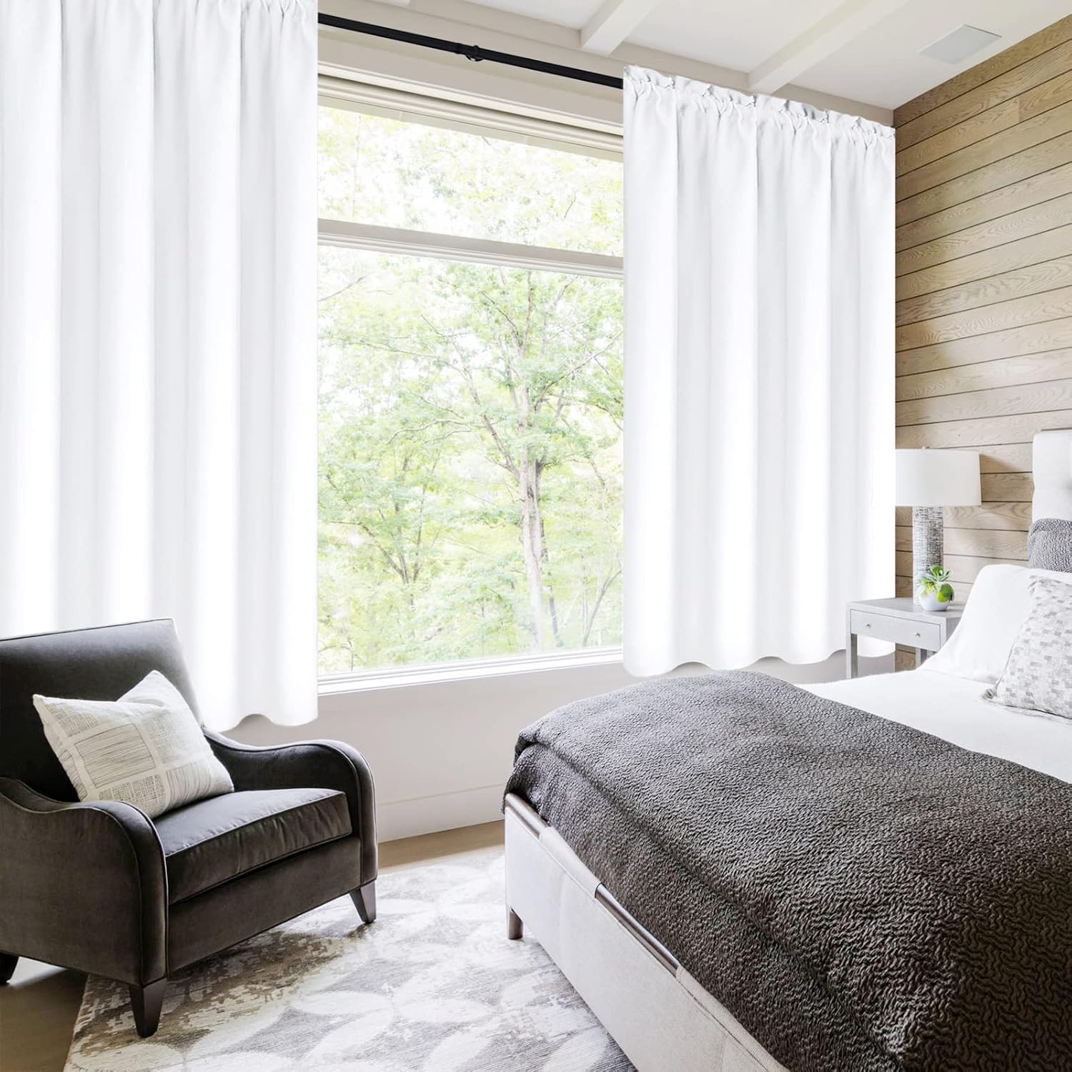DWCN White Curtains for Living Room Thermal Insulated, 50% Light Blocking Curtains for Bedroom, Dining Room Window, W 42x L 45 Inch, Set of 2 Rod Pocket Curtain Panels