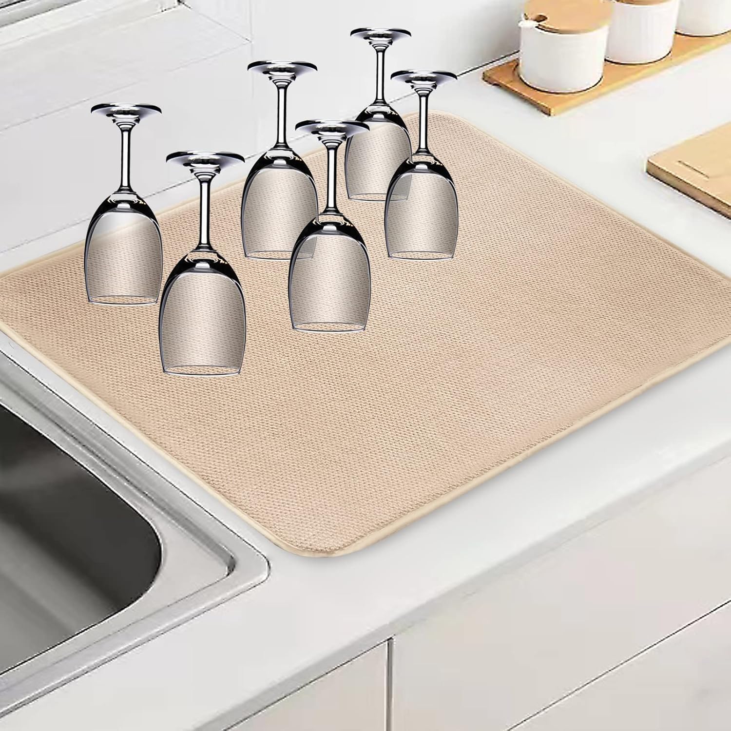 Dish Drying Mats for Kitchen Counter, 2 Pack Dish Drying Pads Dish Rack Mat Drying Pink Kitchen Mat (Beige-2)