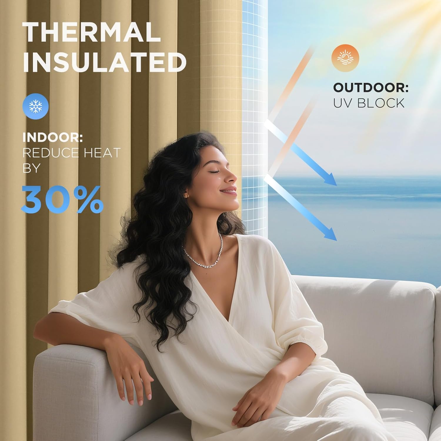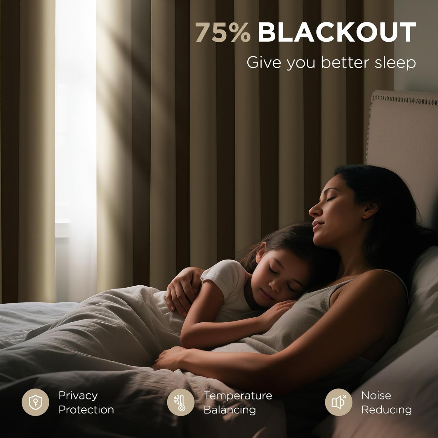 • 【Blackout Performance】Your go-to choice for adjusting indoor light! These curtains block over 75% of sunlight and outdoor glare, creating a cozier atmosphere in bedrooms, living rooms, and more. They also provide excellent privacy protection for your home. Pro Tip: Darker-colored curtains offer even better blackout effects.​