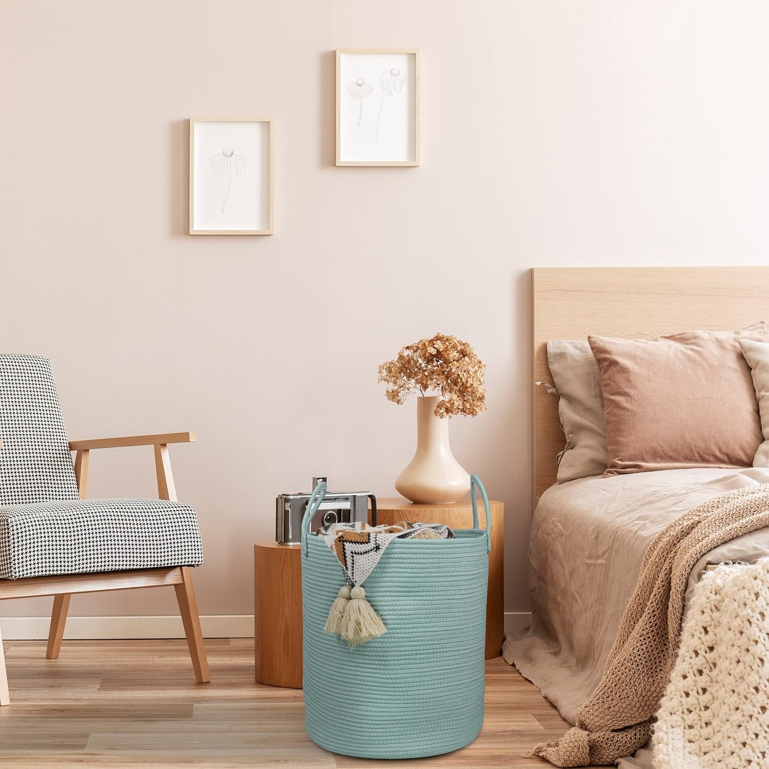 • Designed to complement your room and decor: We have carefully selected classic solid colors for these rope basket bins or hampers for laundry. With these colors, the laundry hamper will look good in any room of your home. This tall round rope blanket storage basket enhances any room or decor. It is perfect for bedrooms, bathrooms, and dorm rooms. These aesthetic rope baskets or hampers for bedroom are essential items for your daily storage needs, helping keep your room clean and organized.