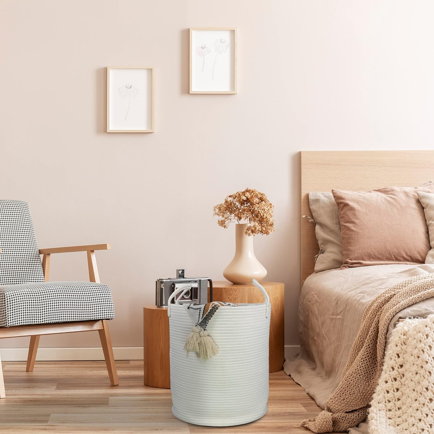 • Designed to complement your room and decor: We have carefully selected classic solid colors for these rope basket bins or hampers for laundry. With these colors, the laundry hamper will look good in any room of your home. This tall round rope blanket storage basket enhances any room or decor. It is perfect for bedrooms, bathrooms, and dorm rooms. These aesthetic rope baskets or hampers for bedroom are essential items for your daily storage needs, helping keep your room clean and organized.