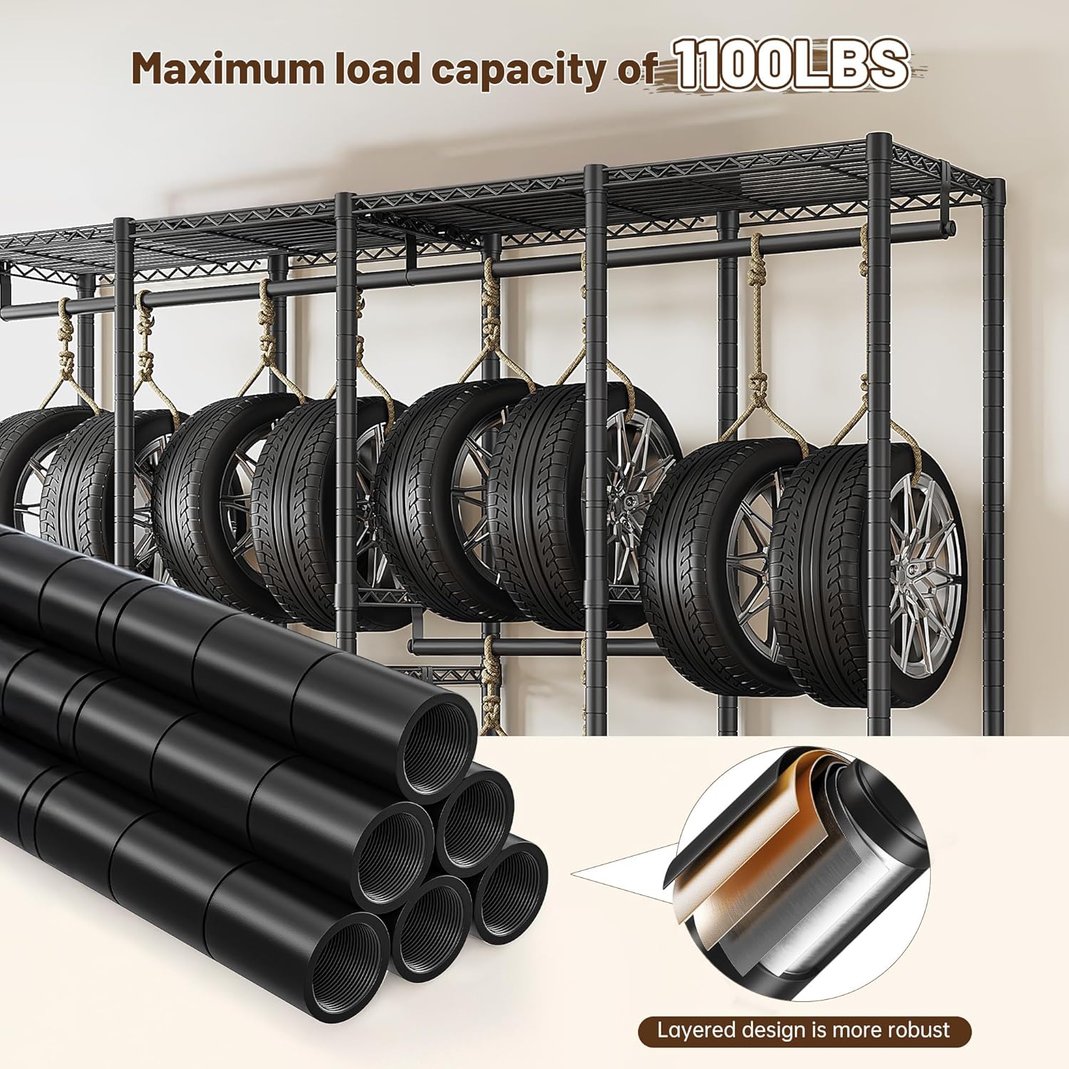 Raybee Clothes Rack Heavy Duty 1100 LBS Capacity Clothing Racks for Hanging Clothes Adjustable Garment Rack,17.7" D x 75.8" W x 76.9" H Black