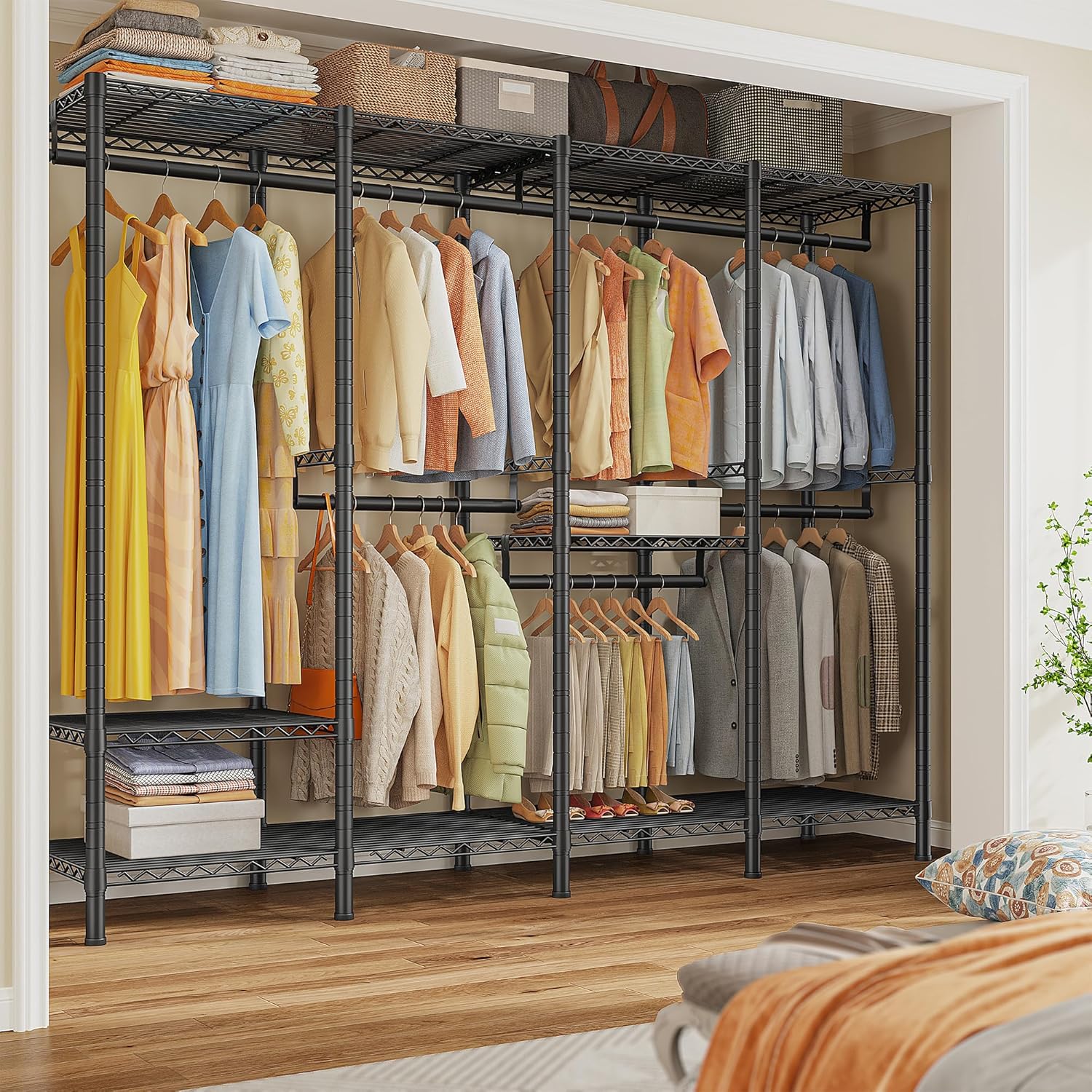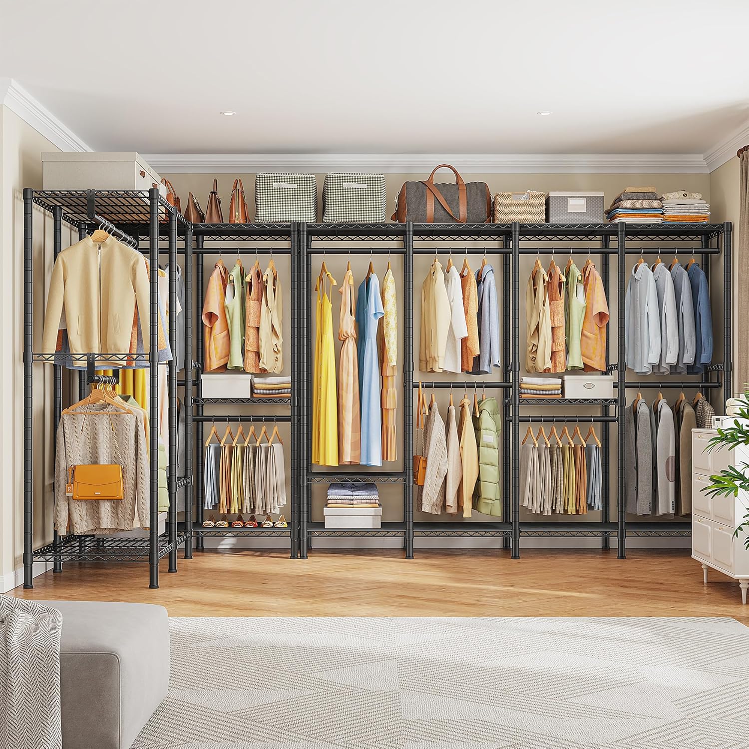 • Large Dimensions & Strong Capacity: Large size 75.8"W*17.7" D*76.9"H. Clothes rack with strong capacity 1100 lbs, which can hang 280+ clothes, and store suitcases, storage boxes, baskets, folded clothes. Tips: Prior to purchase, please ensure the size aligns with need.