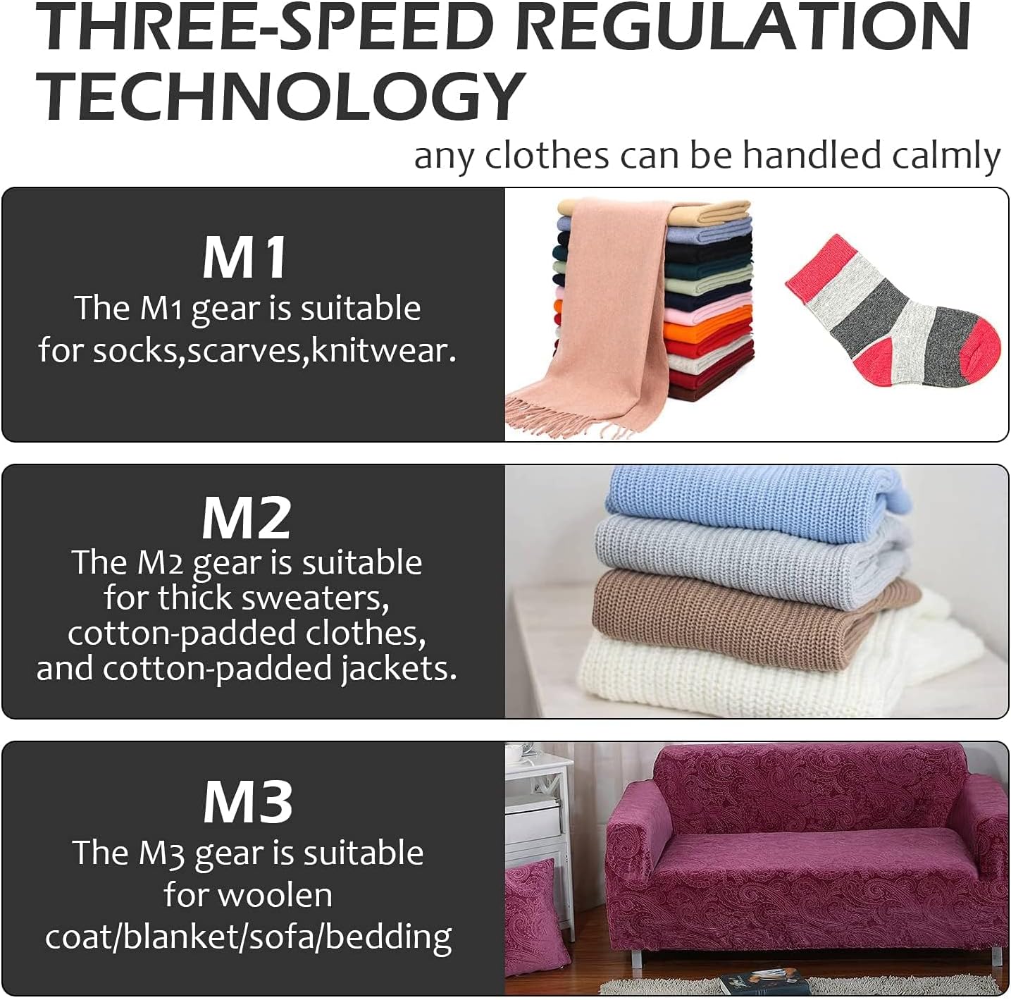 • ✅ FAST and EFFICIENT: Our fabric shaver has 3 speed settings (I/ II/III) and honeycomb mesh cover with 3 different sizes of holes ensures that meet the need of all fabric surfaces. Speed 1 is for delicate fabrics, Speed 2 is suitable for thicker clothes, and Speed 3 is advisable for more durable surfaces. Compared with others, our lint shaver can increase work efficiency by 50%, eliminates fuzz & pilling without damaging the clothes and no hurt to the surface of the fabric