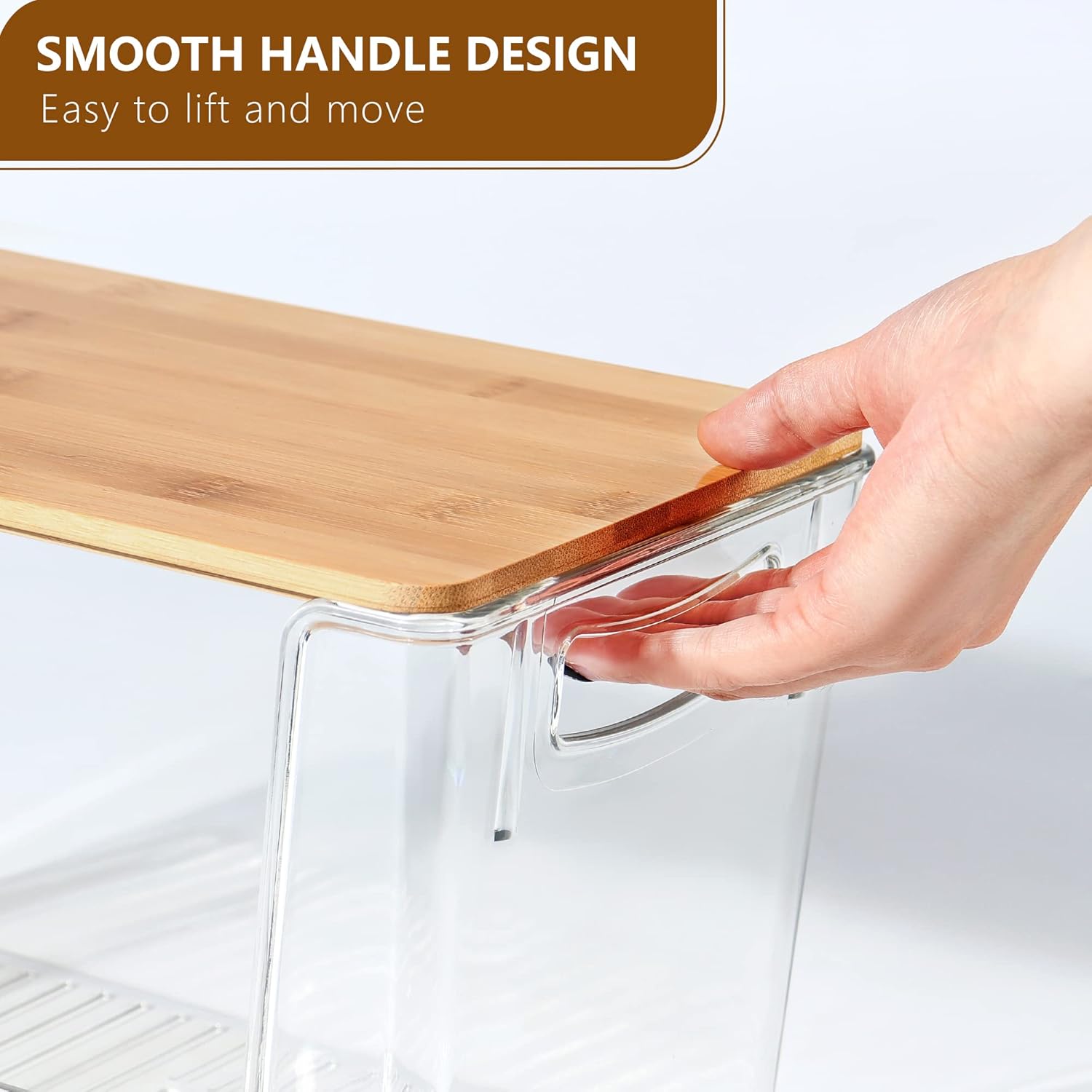 • Bins stack with bamboo top to create space-saving, vertical storage in kitchen spaces; The open fronts provide easy access to stored items; It easier to grab items without removing the lid.