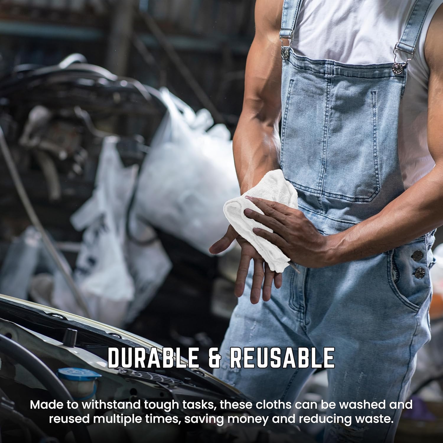 100% Cotton Terry Towels - Pack of 500 (12x12 Inches) White Cotton Terry Cloth Bar Rags, Multipurpose High Absorbent Cleaning Cloths for Auto Detailing or Painters