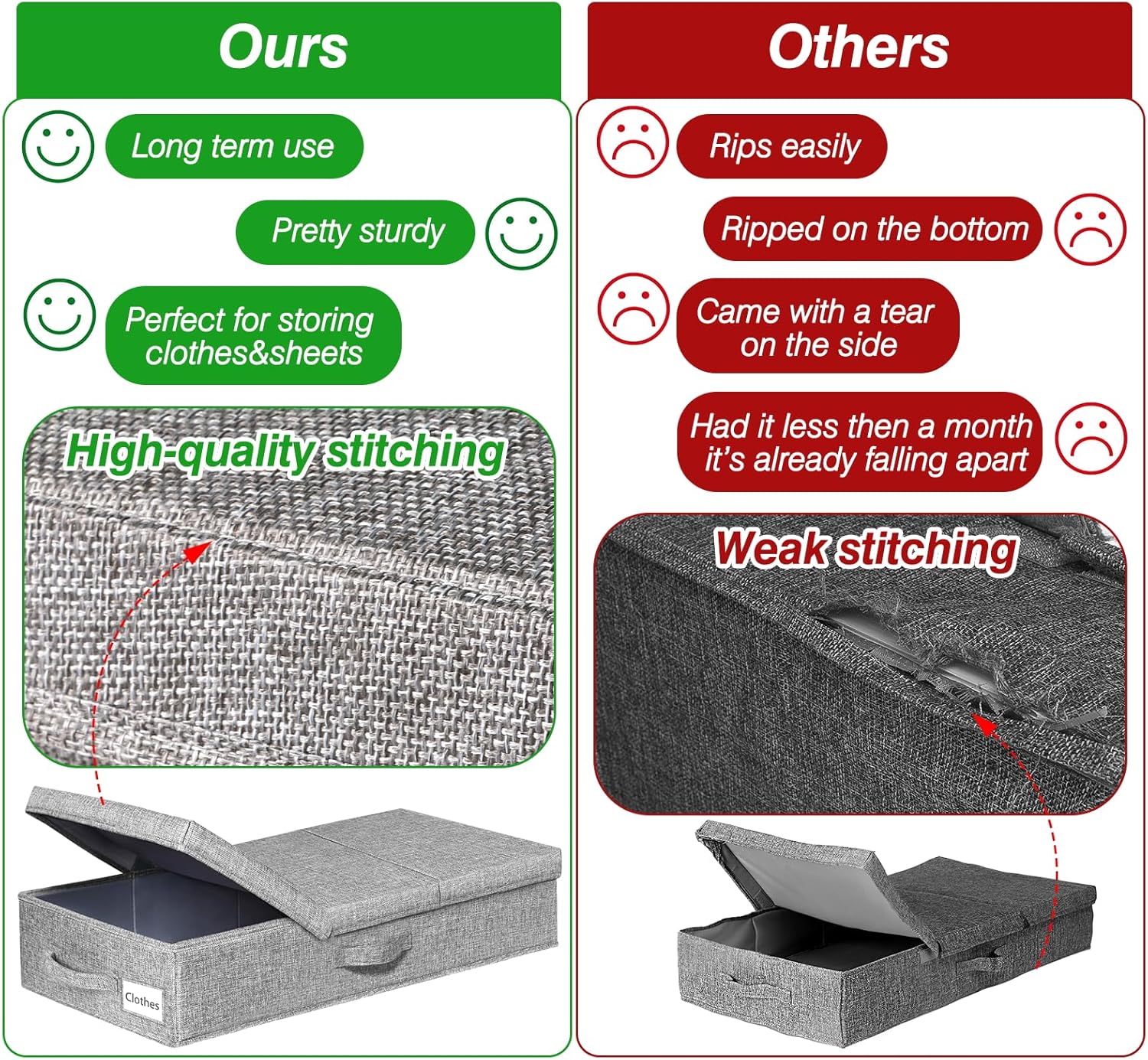 • MULTIPURPOSE STORAGE: Large, durable containers for organizing are perfectly sized to slide right under the bed. The storage bins underbed is perfect for use as under bed shoe storage organizer, under bed blanket storage, clothing storage under bed, under storage bins under bed, under the bed drawers stackable storage bins with lids, under crib storagen