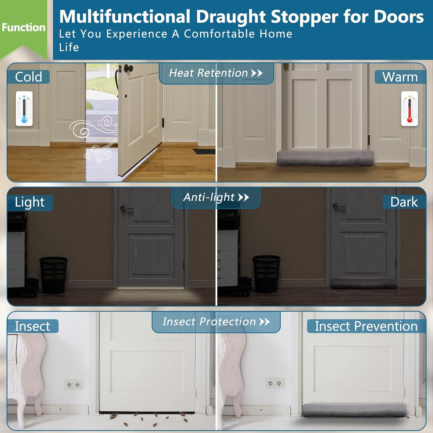 • MULTIFUNCTIONAL DAILY PROTECTION: Multifunctional door draft stopper can block cold wind, light, noise, smell, dust and to a greater extent. And Keep your space cozy. The most efficient solution is to prevent the heat and cold from escaping during winter and summer