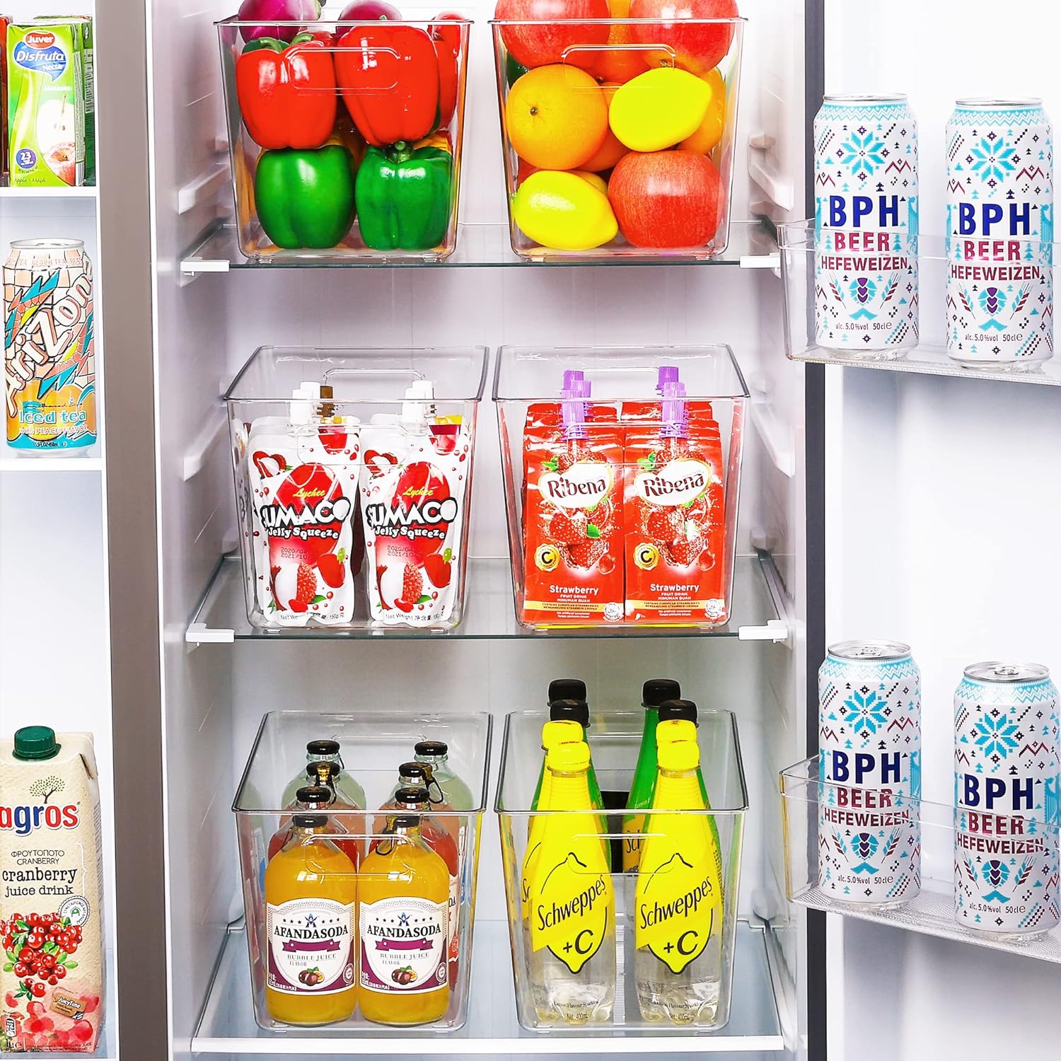 • Make Your Life Much Easier ---- You can use these pantry bins for various things throughout your home to organize and make your life easier. They are great for creating a clean and organized refrigerator or pantry. Ideal for fruit, vegetables, drinks, yogurts, canned goods, meat. You also can use them for storing dry goods in your pantry.