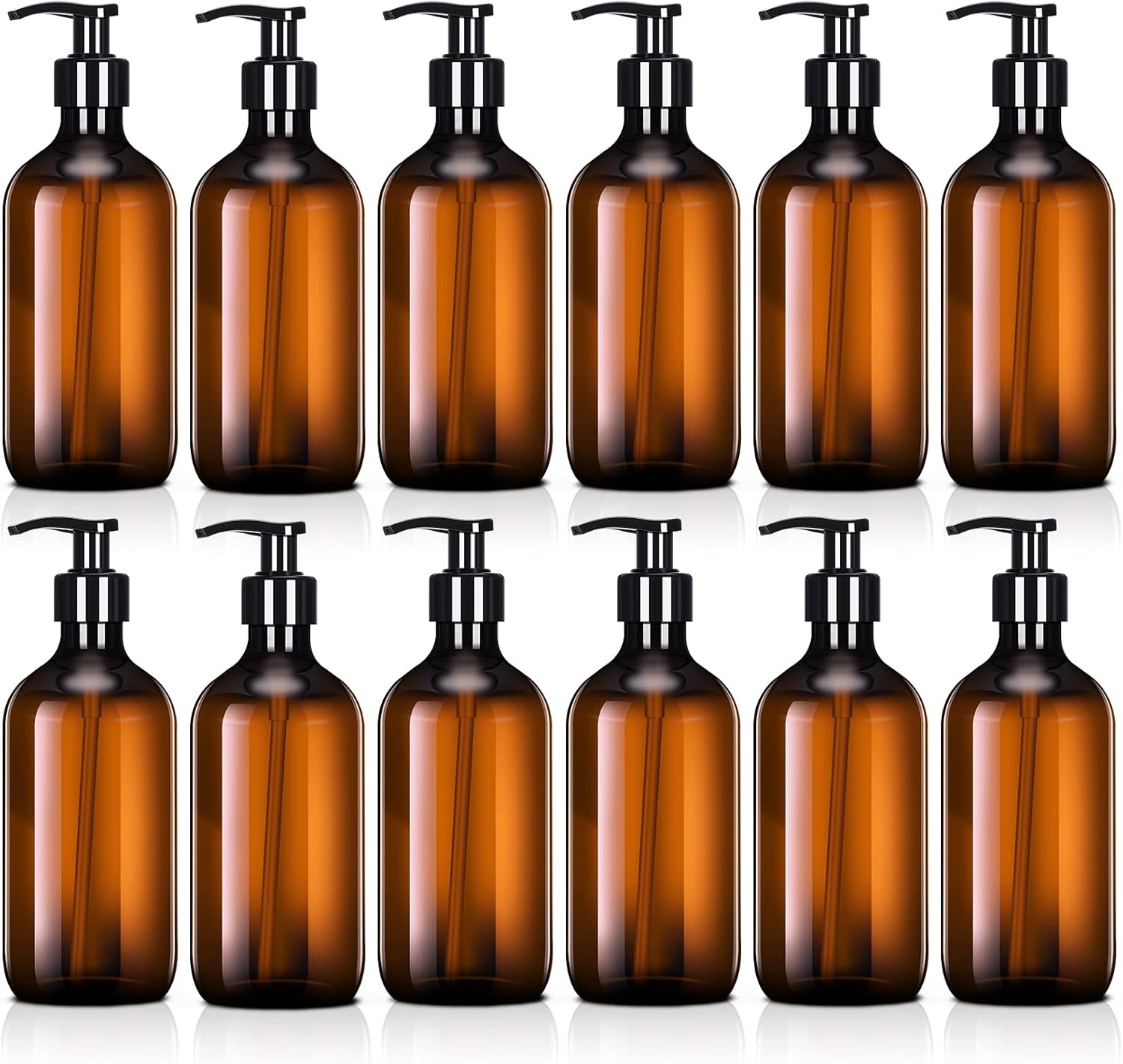 Tessco for you 12 Pack Amber Soap Dispenser Empty Plastic Pump Bottles Dispenser Refillable Shampoo Container for Hand Sanitizer Soap Lotion Body Wash Conditioner Bathroom Kitchen Travel(12 oz)