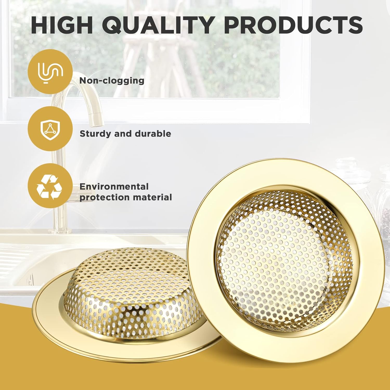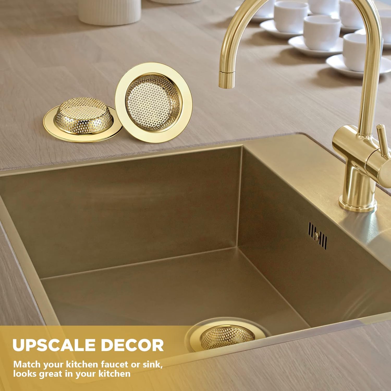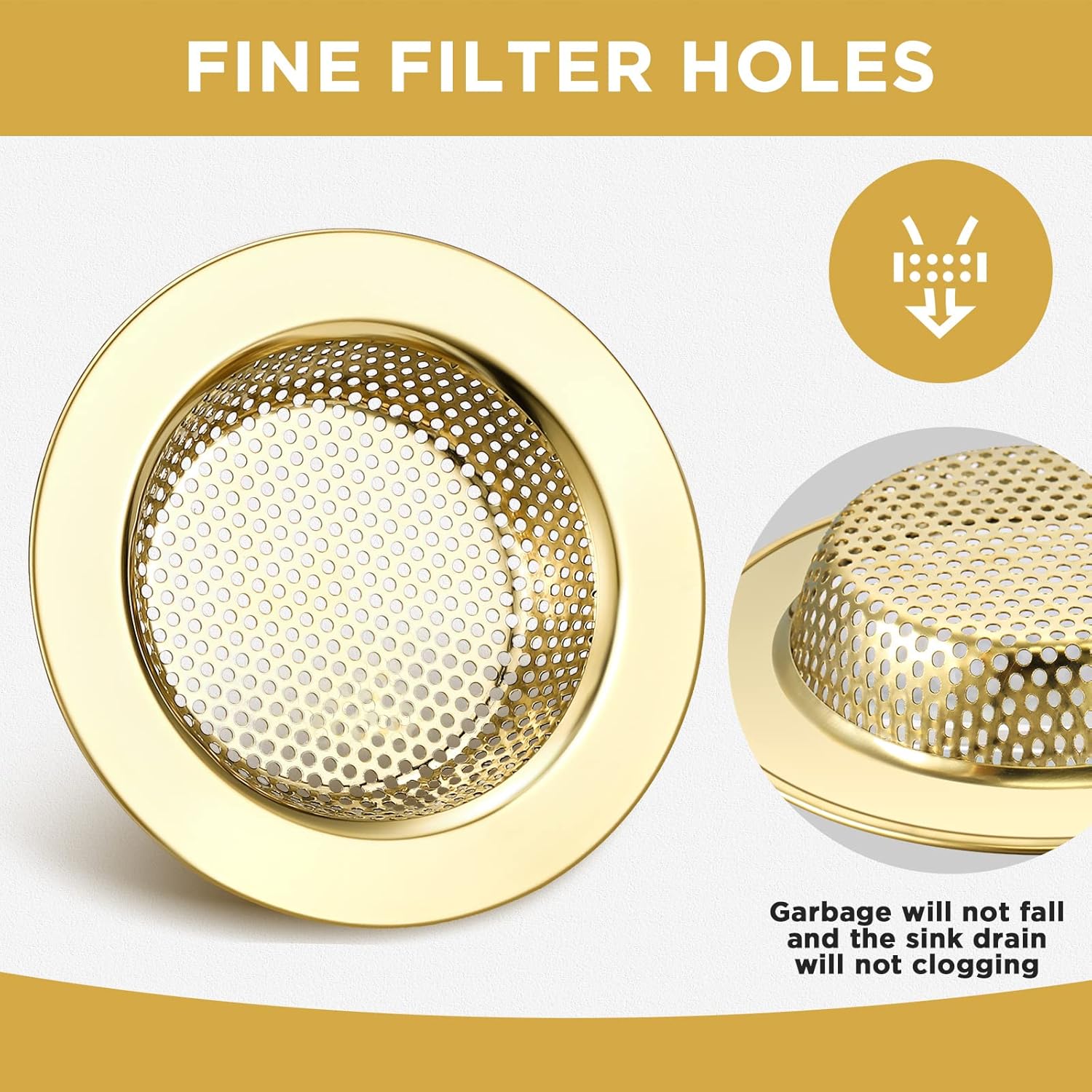 • Elegant Gold: this kitchen sink strainer is designed in gold, which is eye catching and beautiful, easily matching with your kitchen and bathroom decoration, basic yet beautiful, adding a sense of exquisiteness to your house