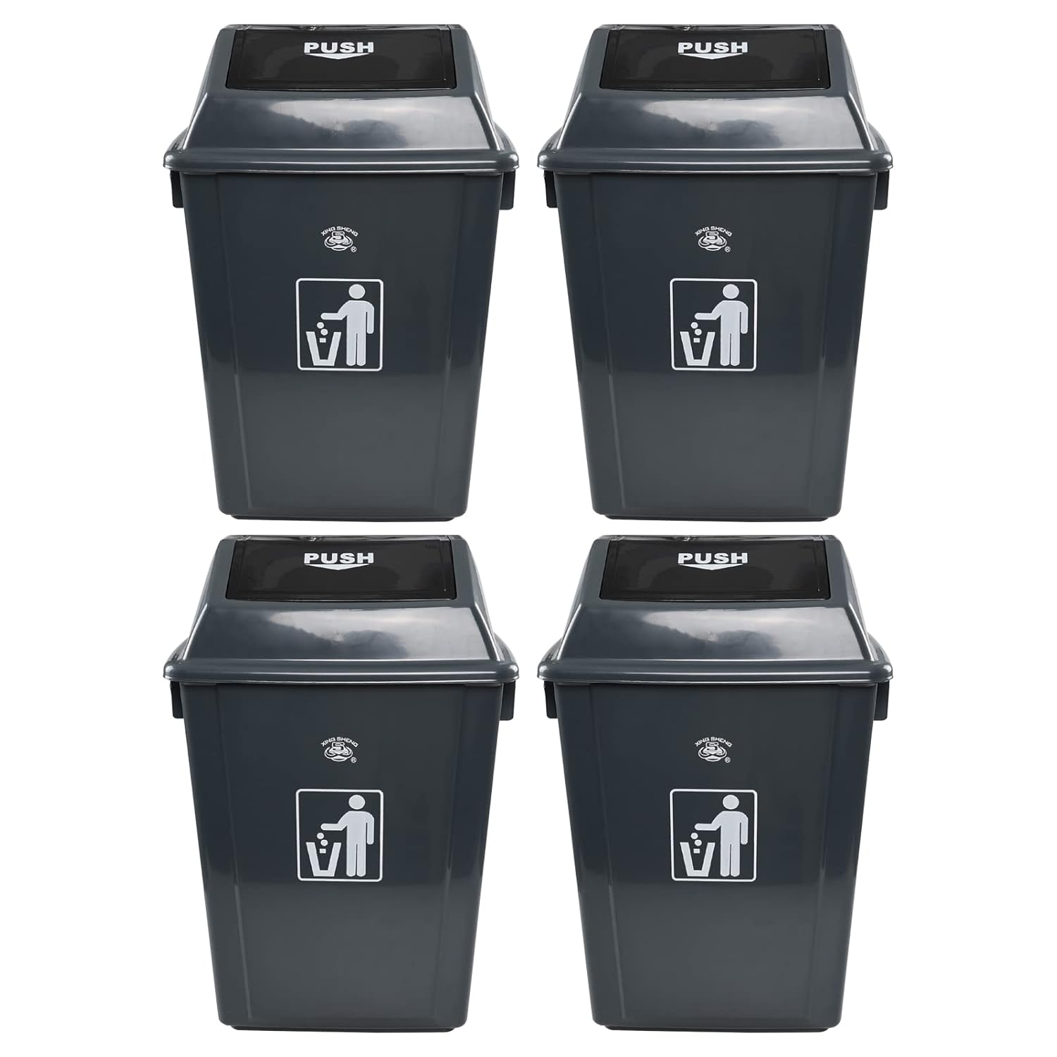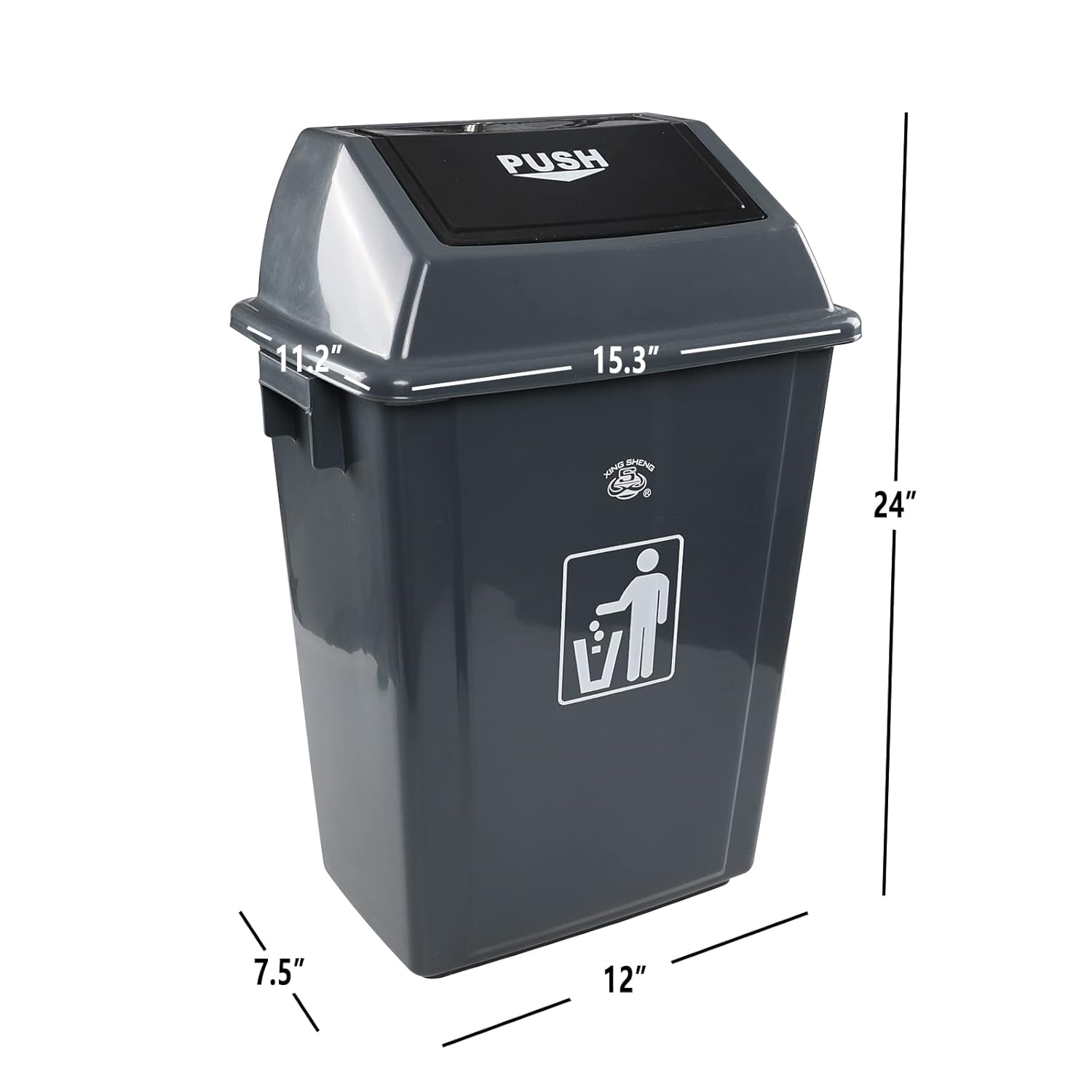4 Packs Large Garbage Bin with Lid, Plastic Kitchen Waste Bin, 13 Gallon, Grey